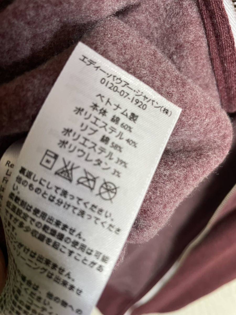 エディバウアーのフルジップパーカーです。サイズM表記で平置き脇下身幅58着丈68肩幅48袖丈62センチ位です。