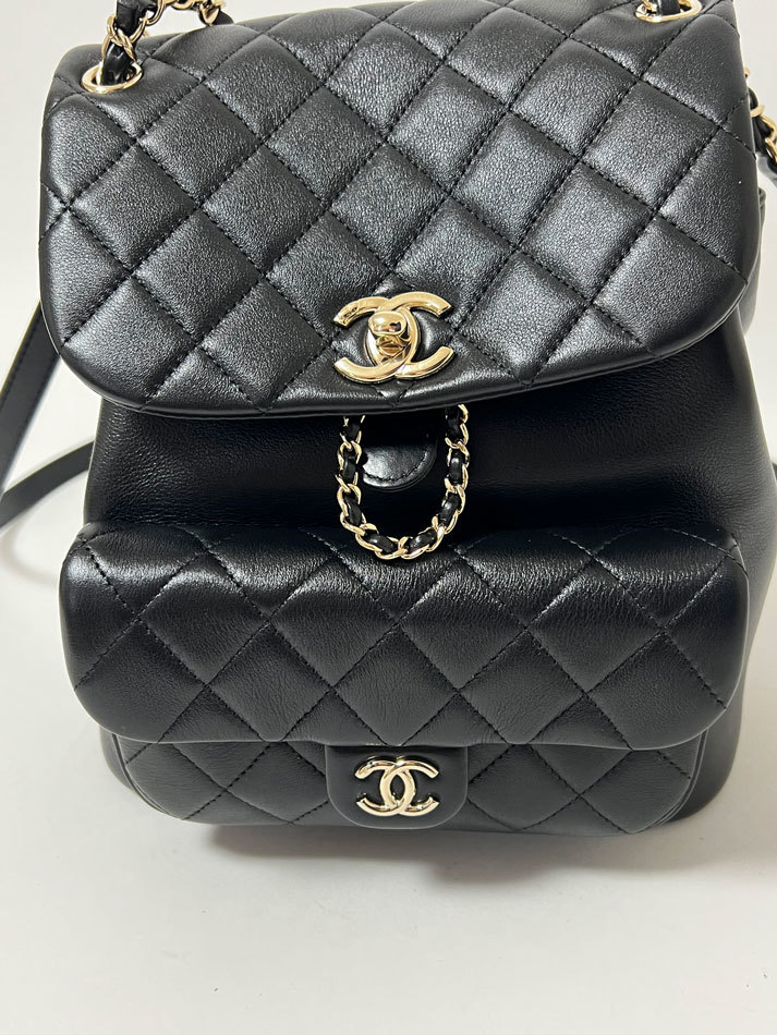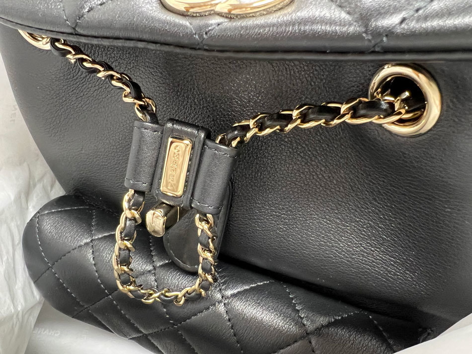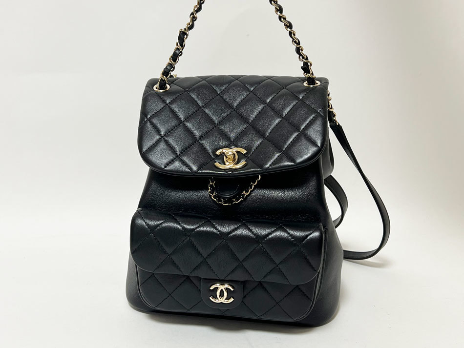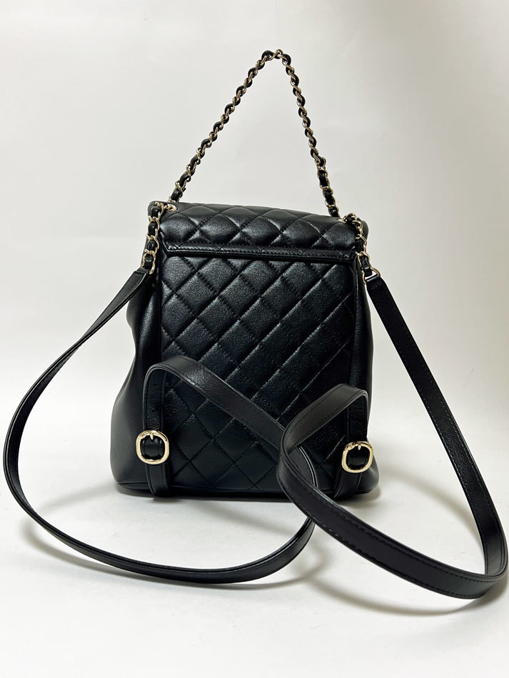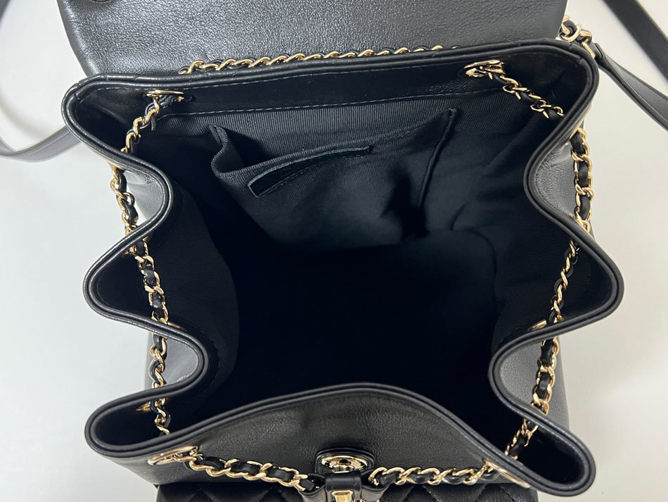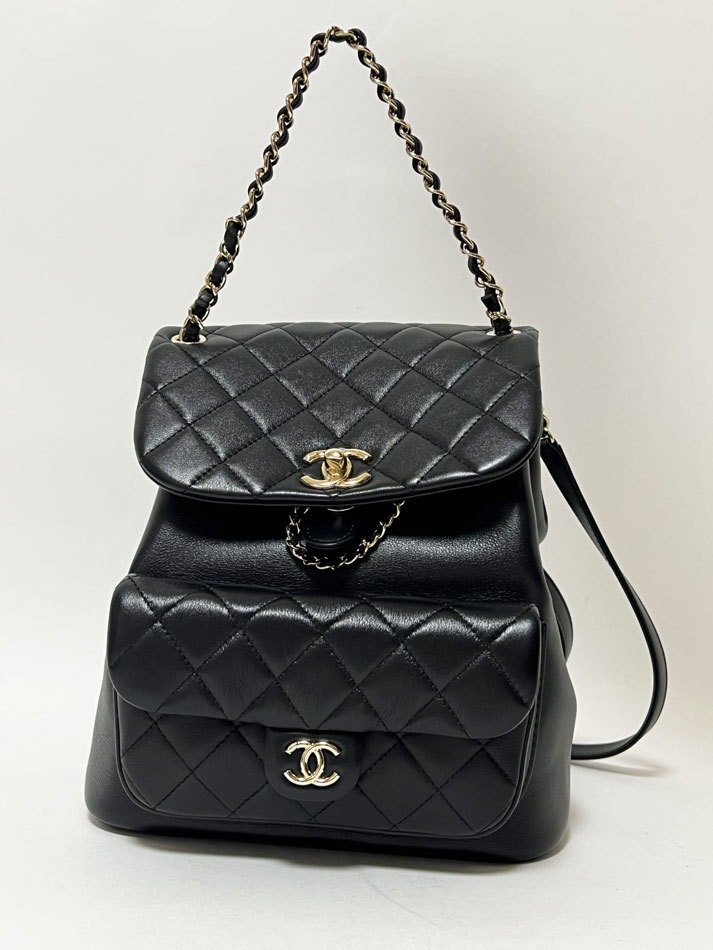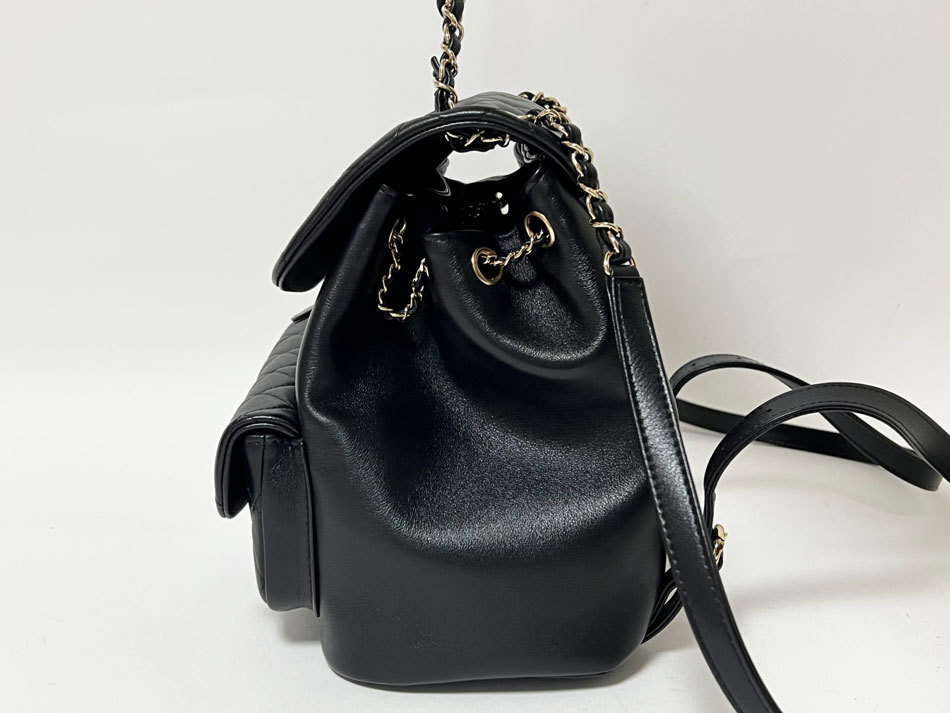| 商品説明 | ◎ツイストロック&巾着開閉式 外ポケット×1 内小型ポケット×1 シャネルのラムスキン素材のバックパックです。 |