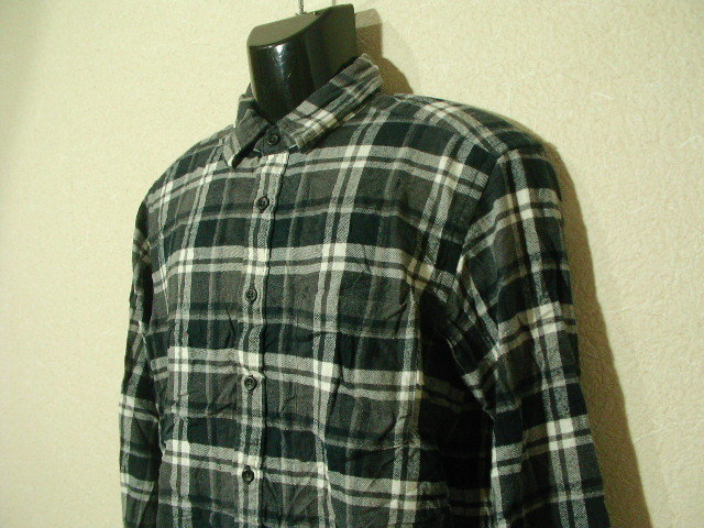 ssy5355  ユニクロ UNIQLO 長袖 ネルシャツ ブラック×グレー ■ チェック柄 ■ カジュアルシャツ