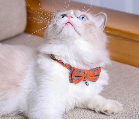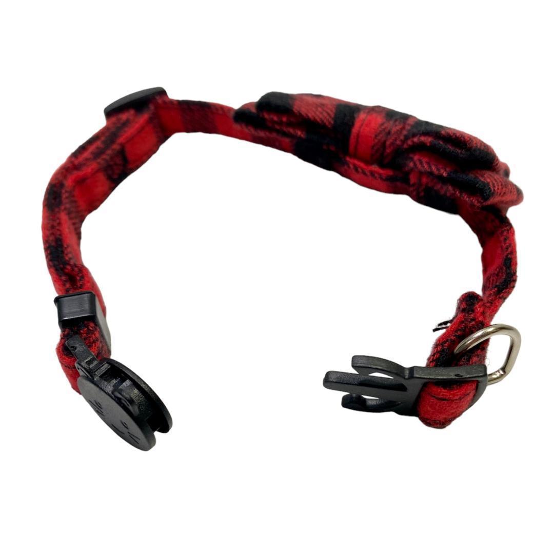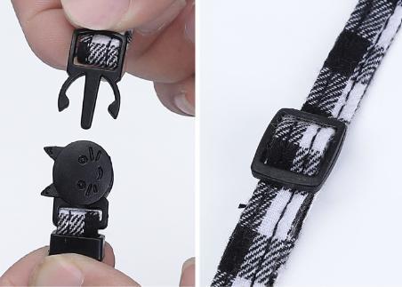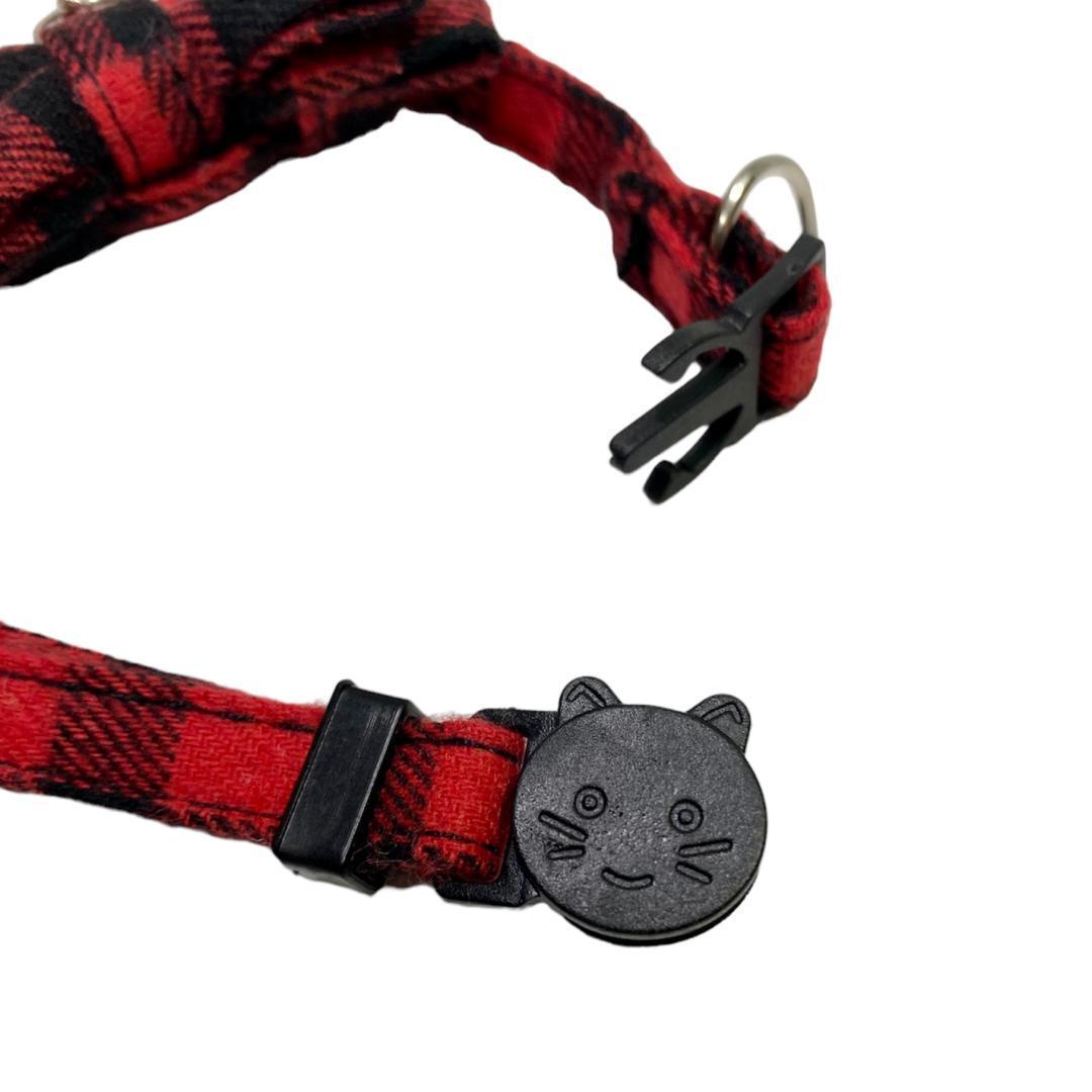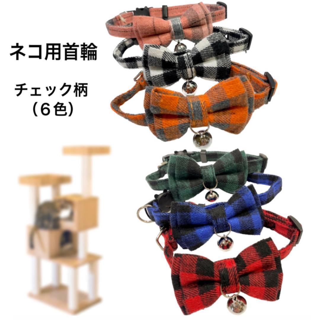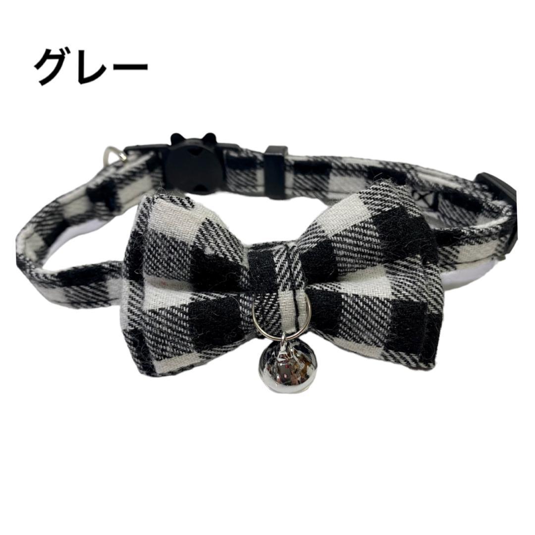【送料無料】グレー 人気のチェック リボン 猫用 ペット用 首輪 セーフティーバックル 安全