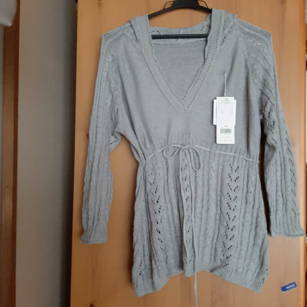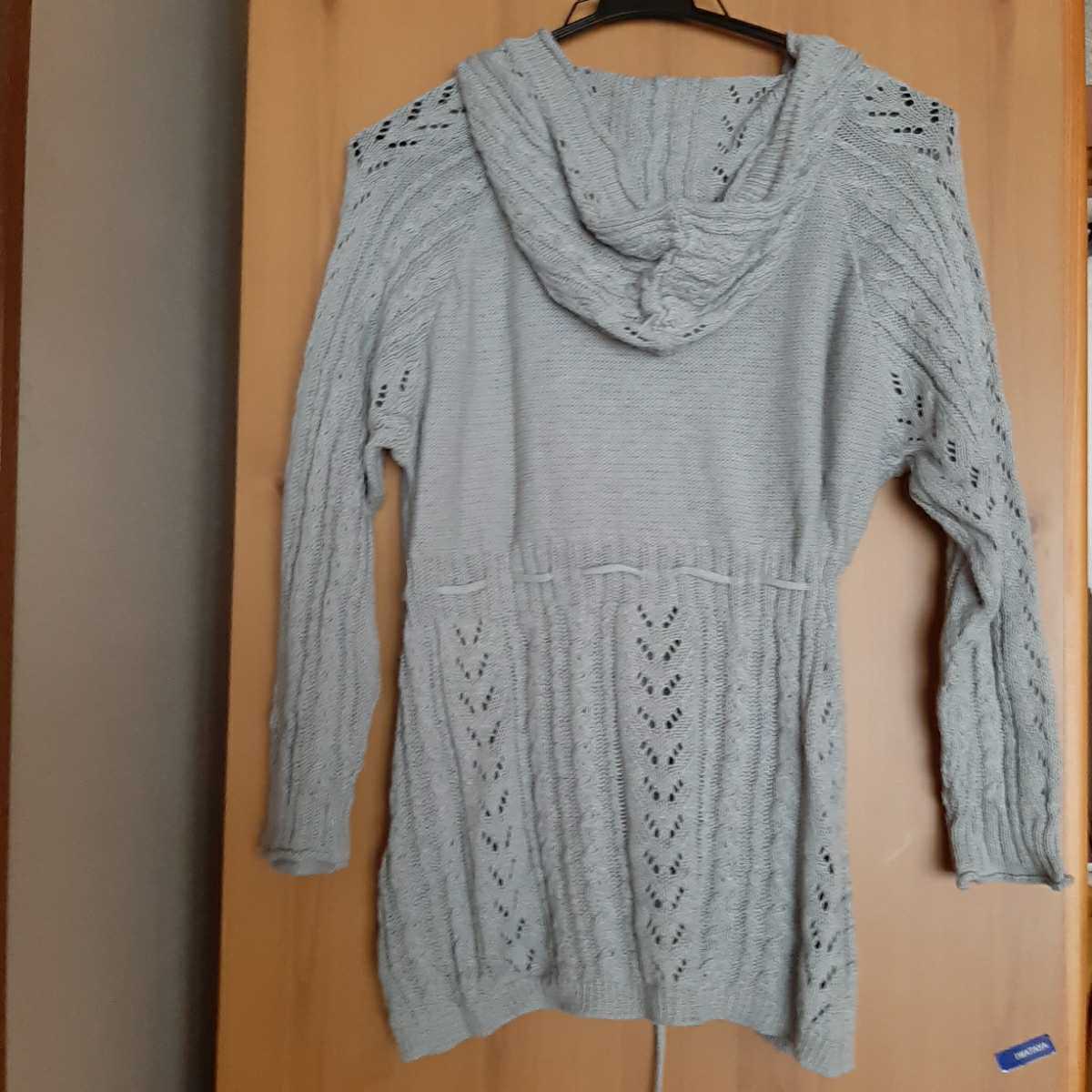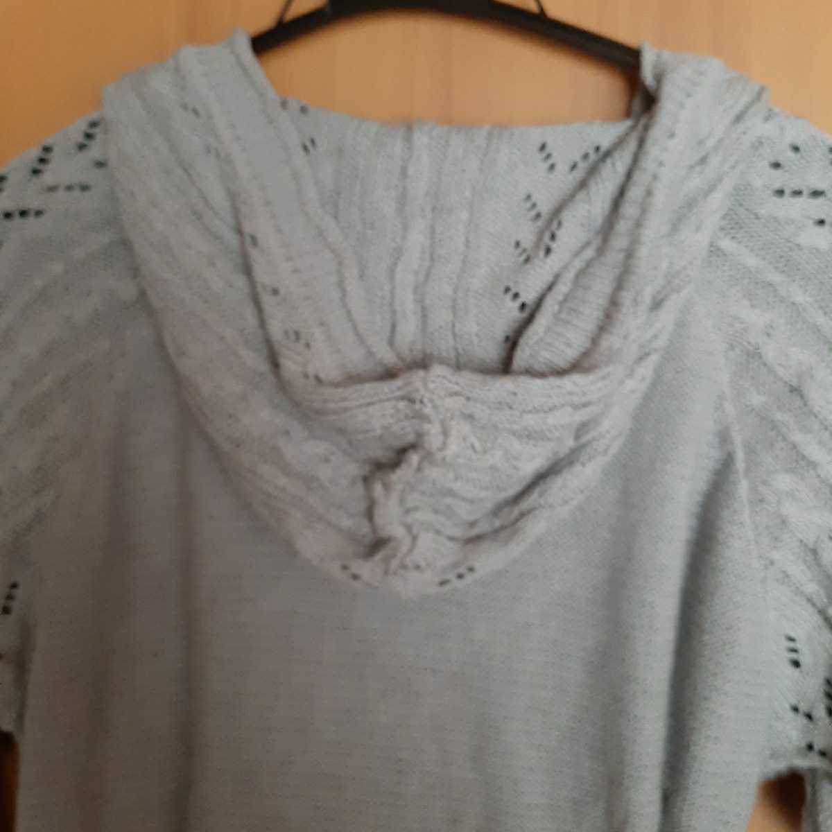 ベルメゾンのグレーのフード付きの透かし編みニット*