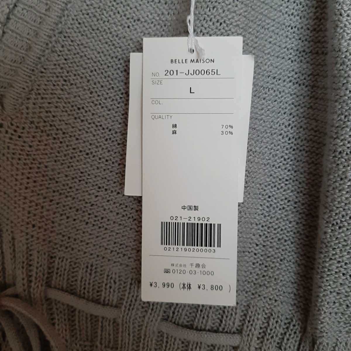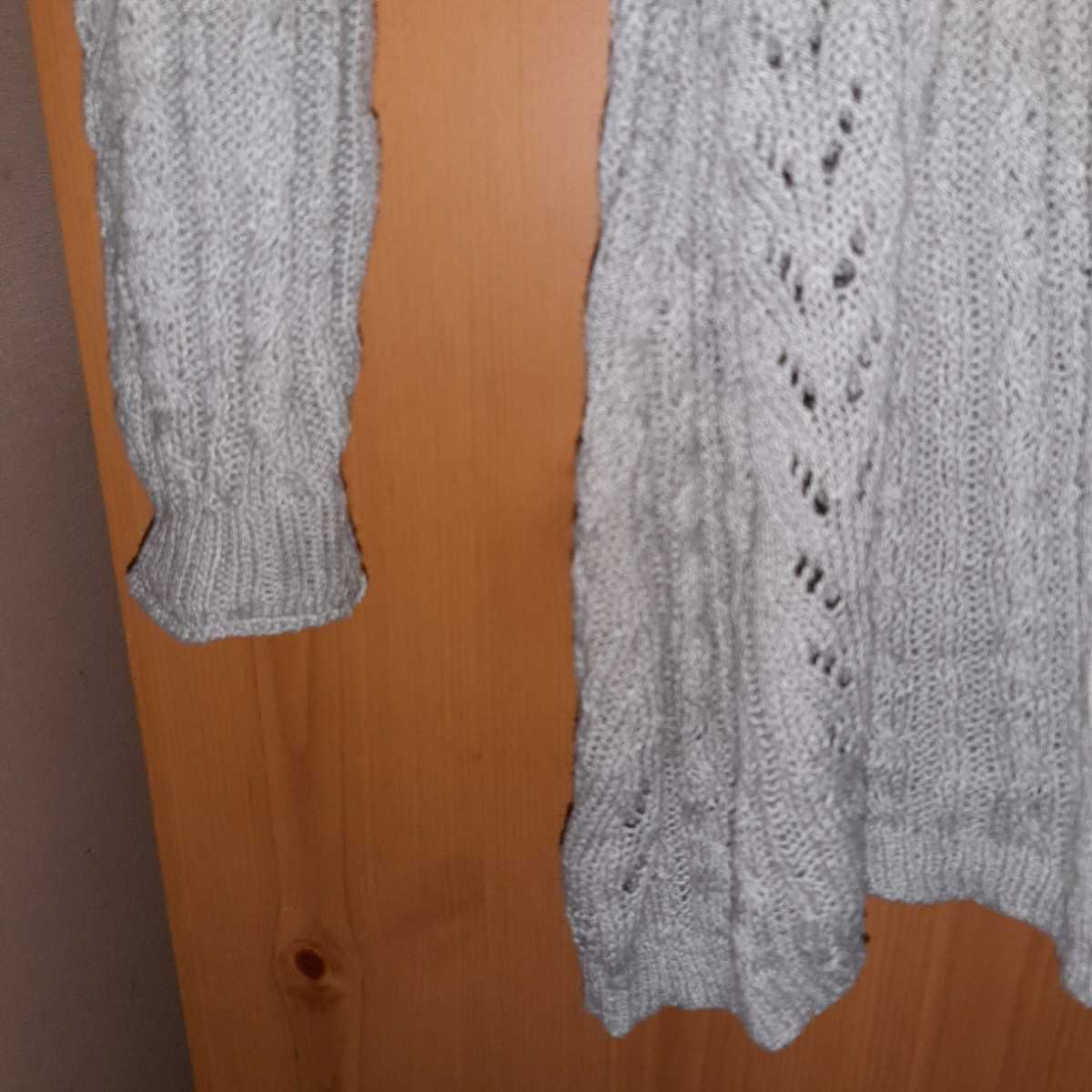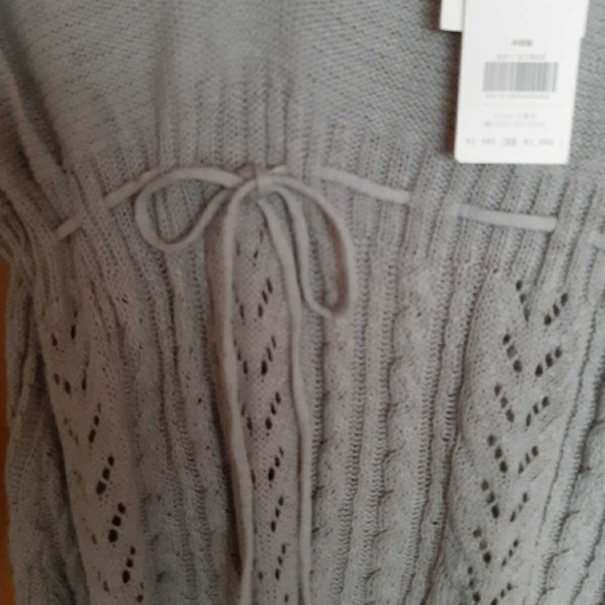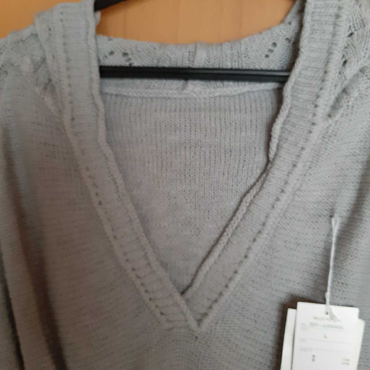 ベルメゾンのグレーのフード付きの透かし編みニット*
