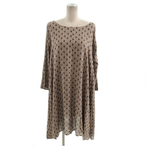 コンジェペイエ Conges Payes ワンピース ボートネック 長袖 ミディ丈 フレア 花柄 ブラウン 茶 ネイビー 紺 アイボリー