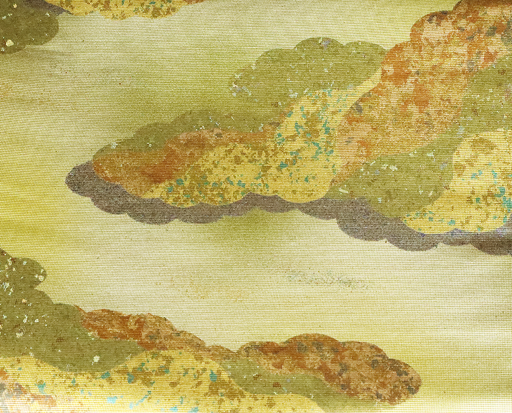 | 色・柄 | 西陣織袋帯 本金引き箔地雲 (写真では上手く色が出ない場合があります。ご了承下さい) ※お使いのディスプレイの種類や設定の差により 実物の色と画像の色が少々異なることもございます。 写真の枚数が多いので一度パソコンでご覧ください。 |