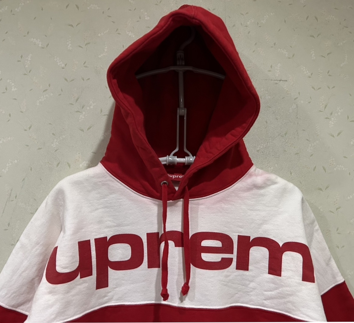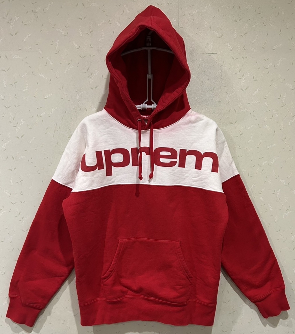 *シュプリーム Supreme Blocked Hooded Sweatshirt プルオーバーフーディー ホワイト×レッド M       BJBC.B