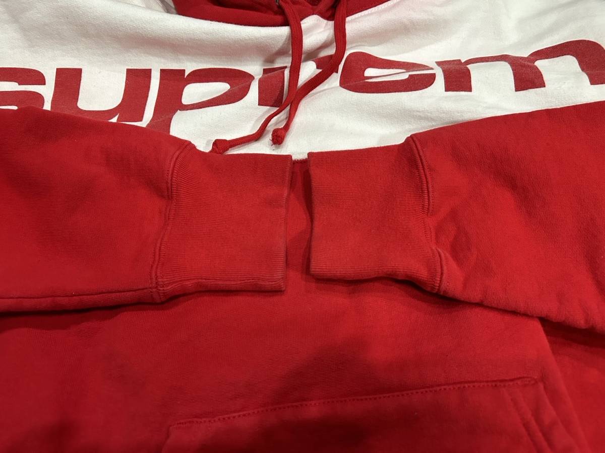 *シュプリーム Supreme Blocked Hooded Sweatshirt プルオーバーフーディー ホワイト×レッド M     BJBC.B