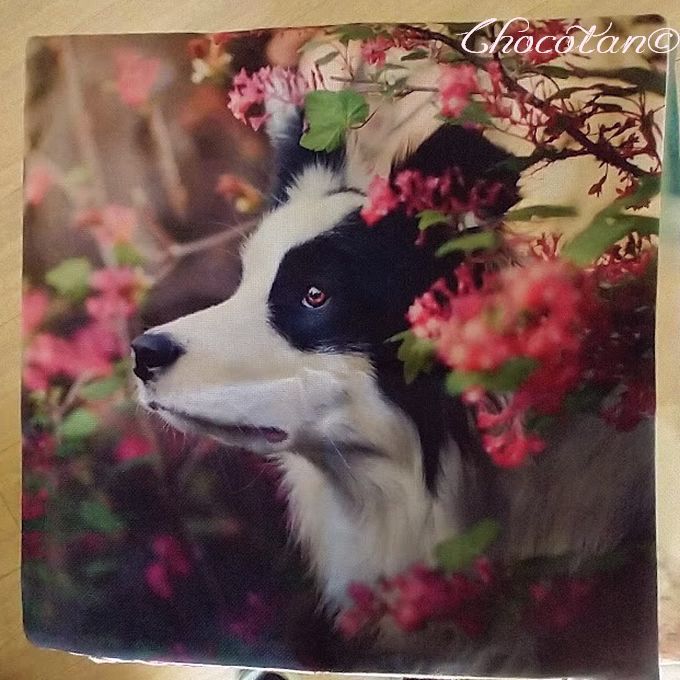 お花の中のボーダーコリー