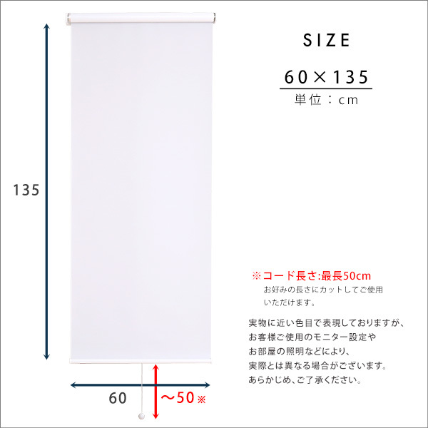 壁空け不要 つっぱりロールスクリーン 幅60cm(採光タイプ) ブラウン