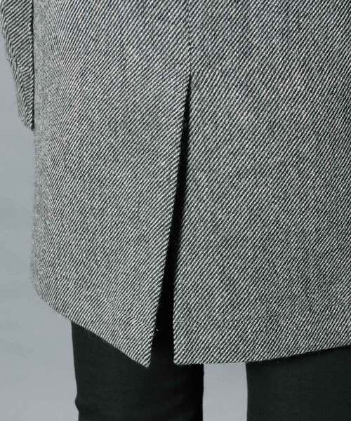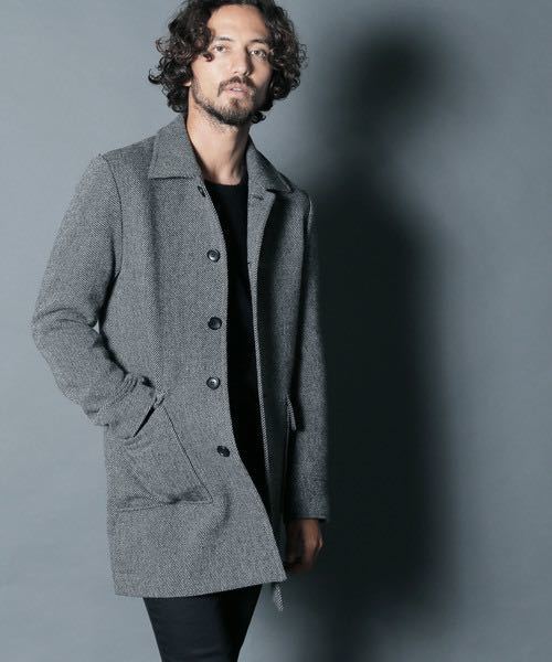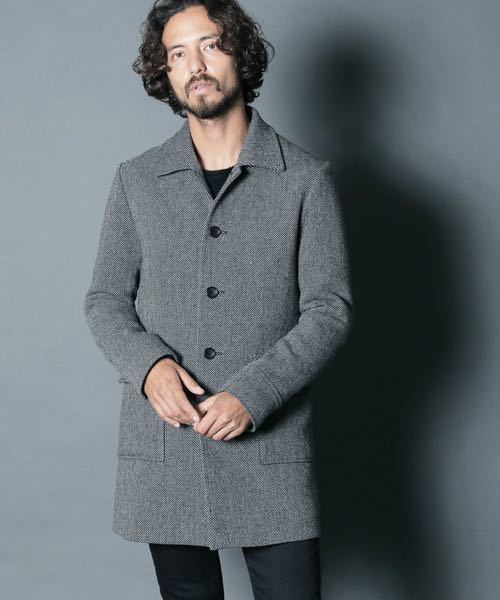 英国産羊毛をブレンドしたツイード素材を使用したシングルコート。ツイード素材の、大人なキレイめアウターシンプルで使いやすく、スラックスやデニム等合わせのしやすいアイテムやや大きめに設定したポケットがシンプルながらもアクセントとなってくれます。