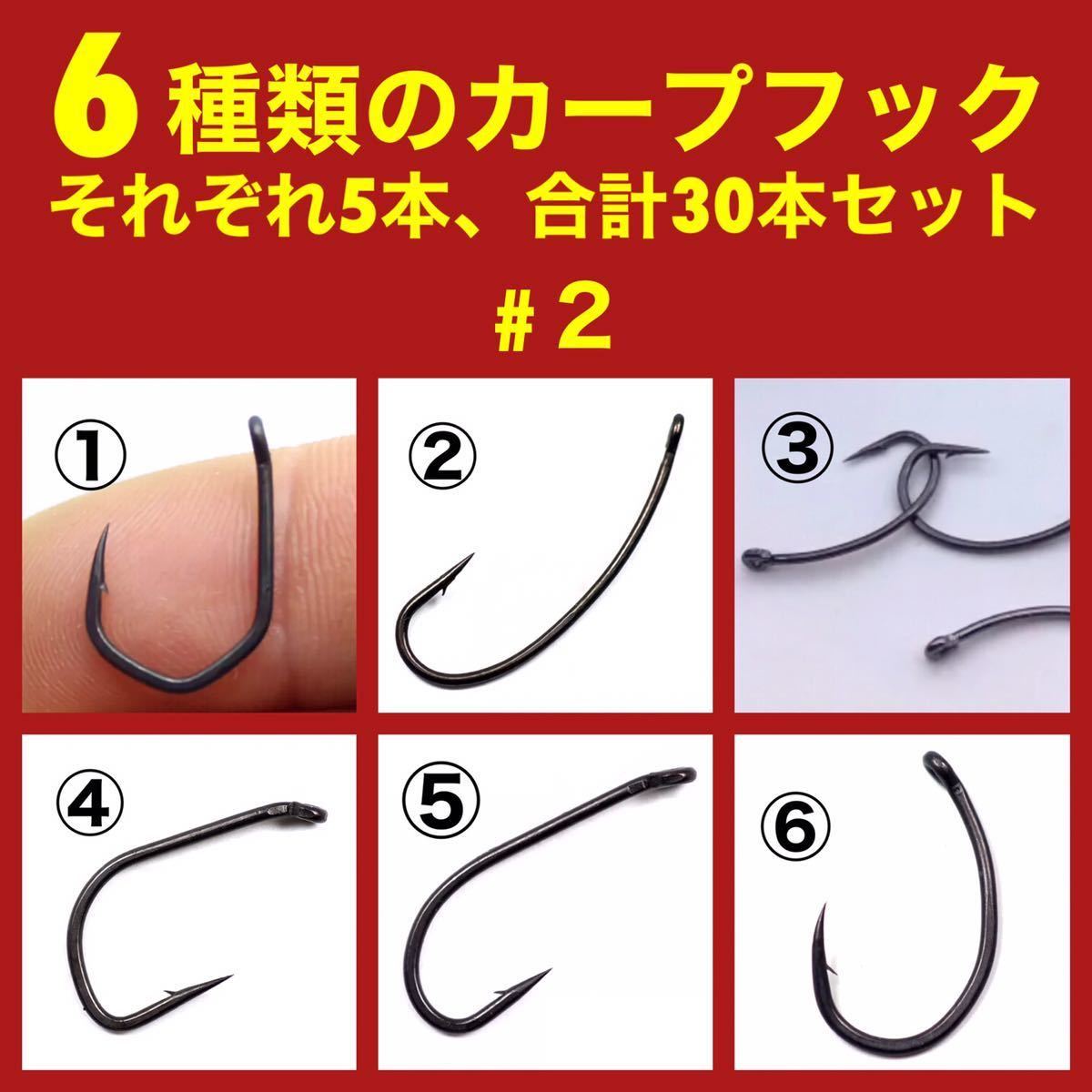 カープフック6種類を5本ずつ合計30本。比較研究に便利だと思います。すべて単品で出品していますので気に入ったらリターン購入可能。