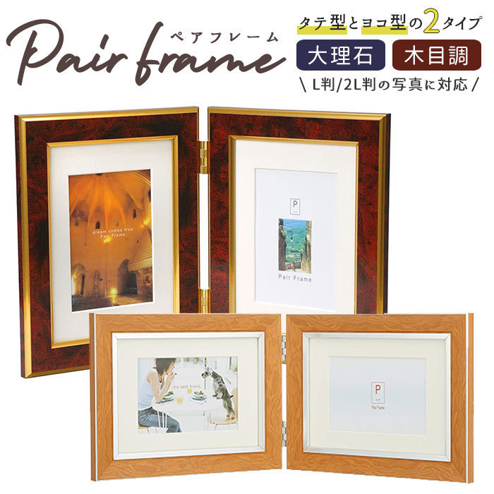 | 商品説明 | ・見開きで2面飾れる定番のフォトフレーム。タテ型とヨコ型の2タイプが登場。 ・大理石や木目調の地模様にゴールドのラインが入った華やかな写真立て。 ・壁掛用金具付きだから、壁に掛けてもスタンドでも両方使える。 ・L判/2L判の写真に対応。 ・大切な写真を引き立てるマット2枚が付属。面材にはガラスを使用。 ・お部屋の雰囲気をアップグレードできるクラシカルな雰囲気は贈答用にも最適。 |