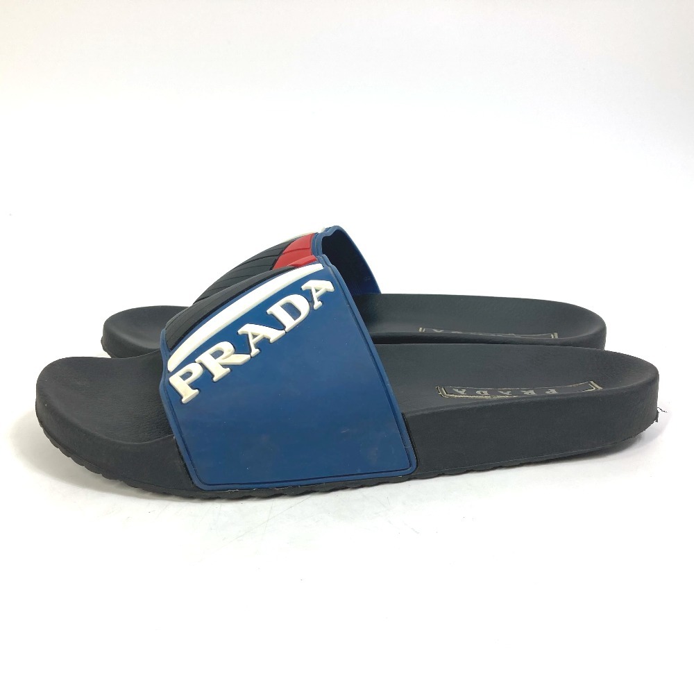 PRADA プラダ 4X3204 プールサンダル フラットサンダル 靴 ロゴ シャワーサンダル サンダル ラバー ブラック メンズ【中古】