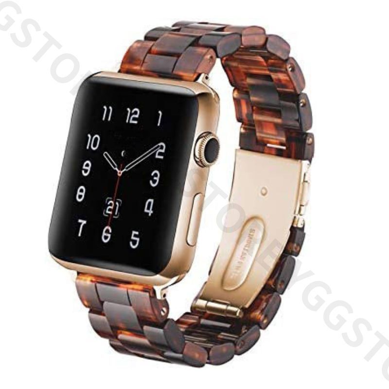 商品名:YGG★Apple Watch べっ甲風 バンド ベルト金 ゴールド 互換 アップルウォッチ プッシュオープン バックル プラスチック 装着簡単
