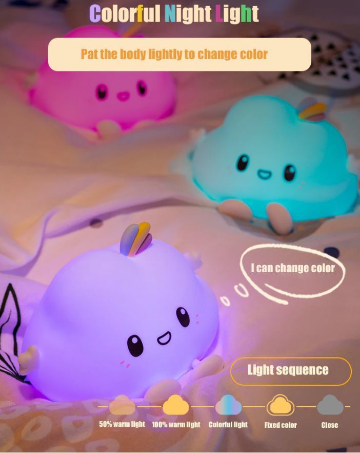 小さな雲の形をした光の雲の形をしたシリコン常夜灯,寝室の装飾,ベッドサイドランプ,子供へのギフト