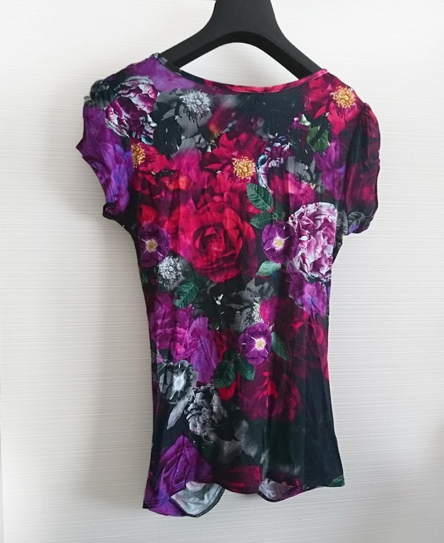 イギリス インポート 英国 BILLIE&BLOSSOM 華やかな花柄トップス UK6(日本サイズ7号程度) キャップスリーブ 薔薇 ダークローズ柄