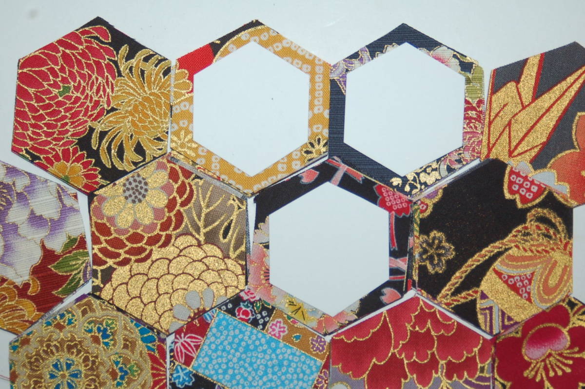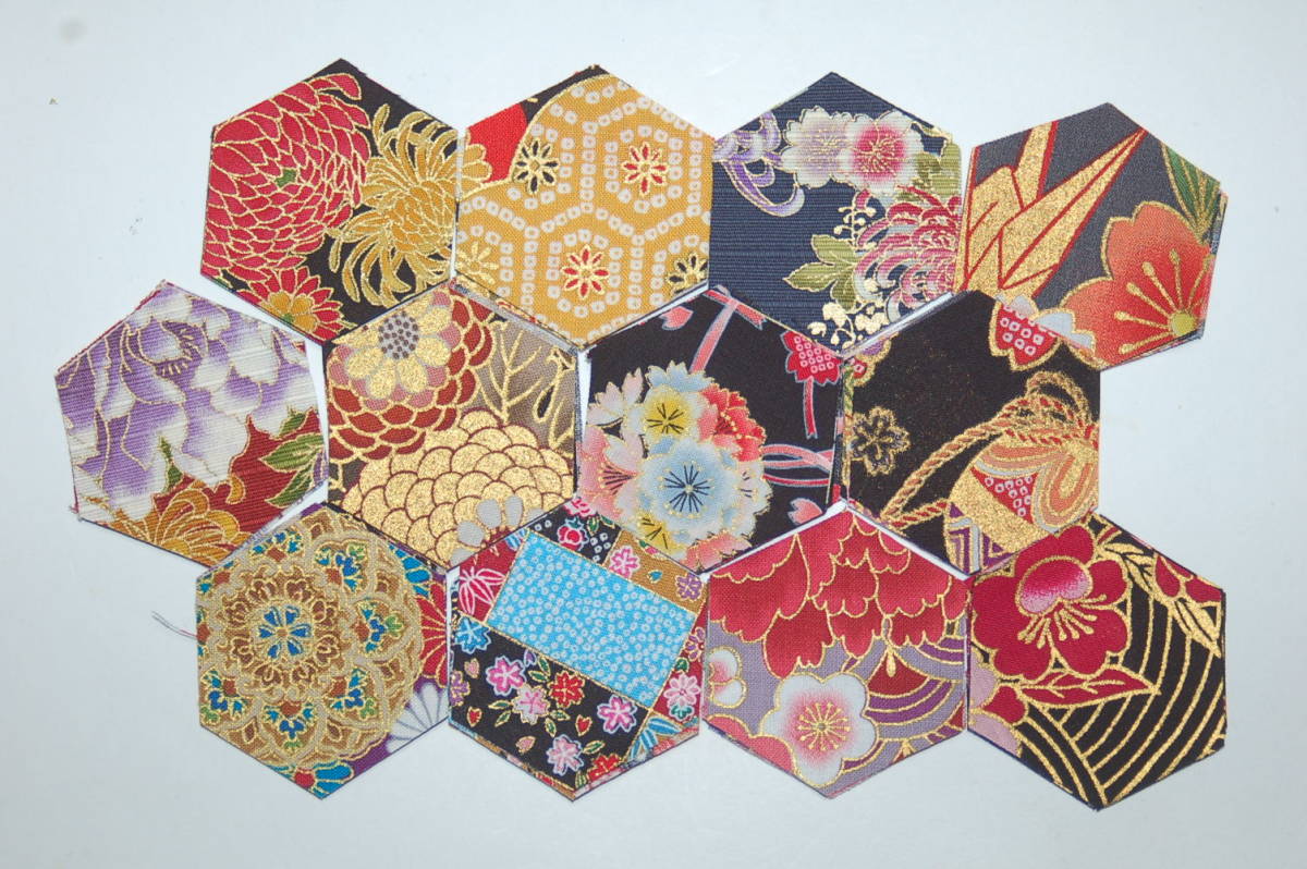 パッチワーク用和風柄六角形出来上がりサイズ22㎜に裁断してます。