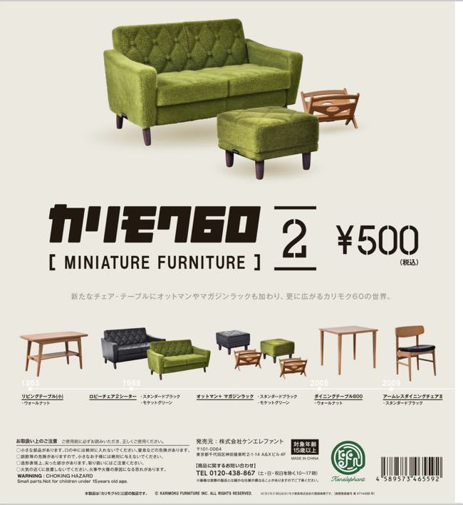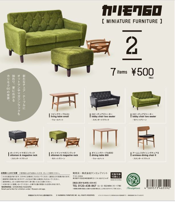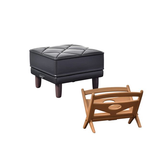 ★カリモク60★ガチャガチャ ミニチュアフィギュア2 オットマン、マガジンラック スタンダードブラック