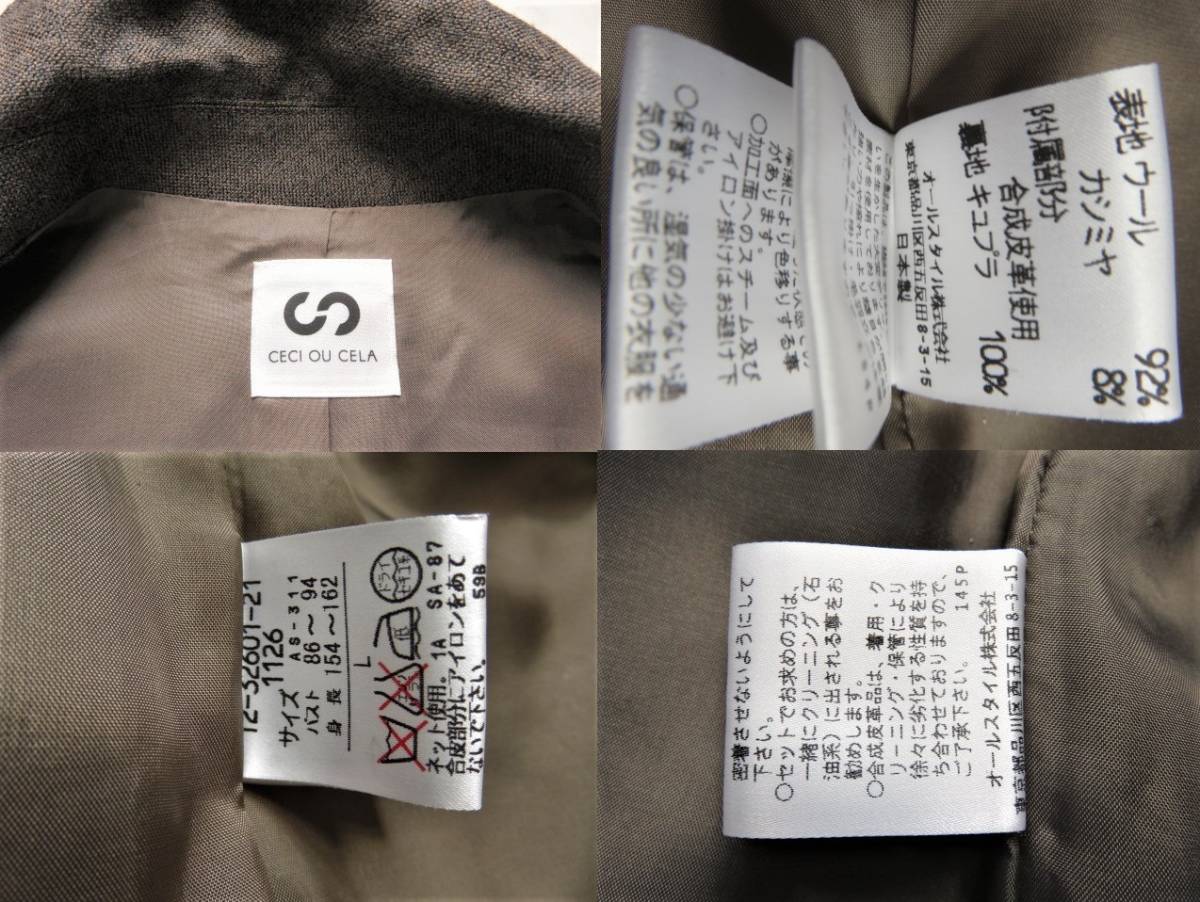 ■新品同様 上質美品【 ceci ou cela 】 セシオセラ 高級 カシミヤ ウール ジャケット 11号 L 日本製 オールスタイル グレージュ j1063