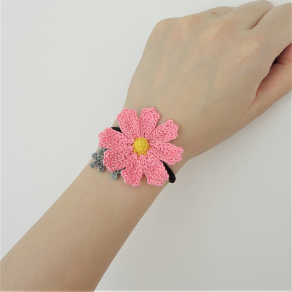 コスモスのヘアゴム*レース編み*ハンドメイド*PK*b78∴再販×3∴