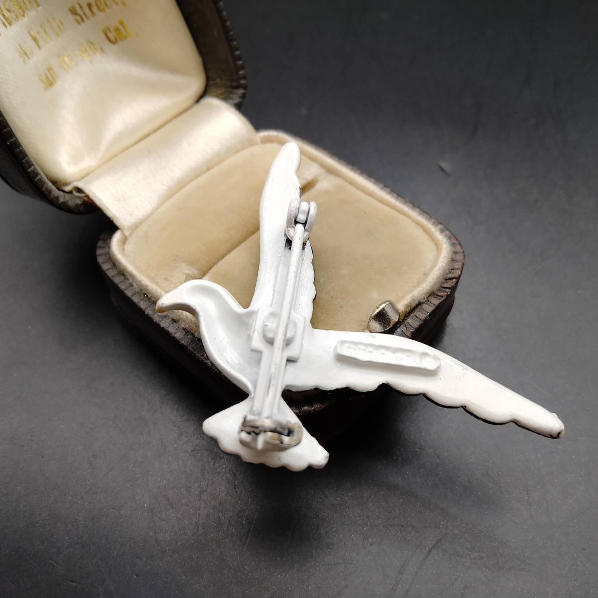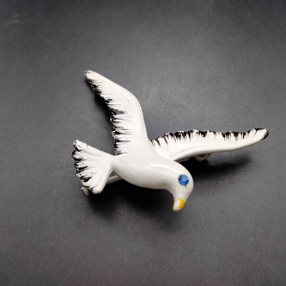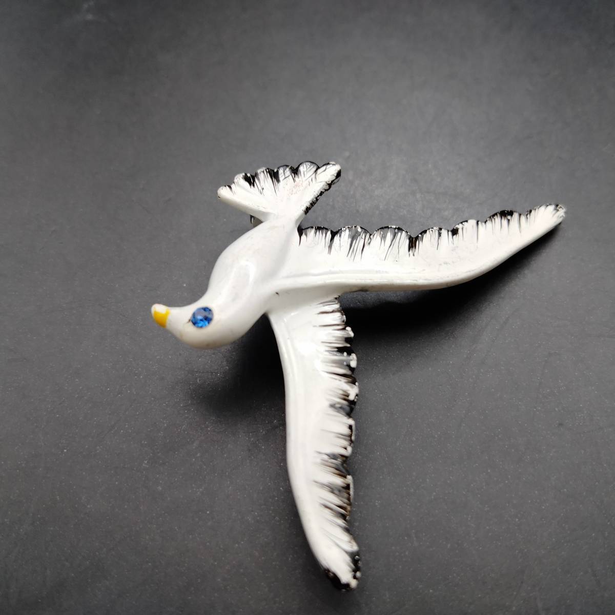 GERRY'S ホワイト バード 鳥 モチーフ 立体 ビンテージ ブローチ 昭和レトロ コスチューム ジュエリー 輸入 6S-6