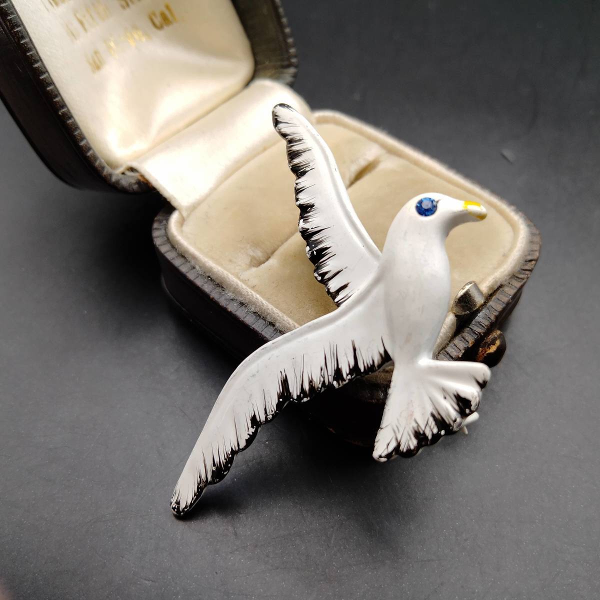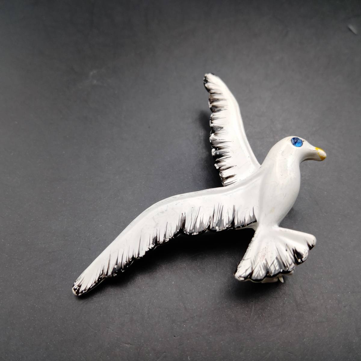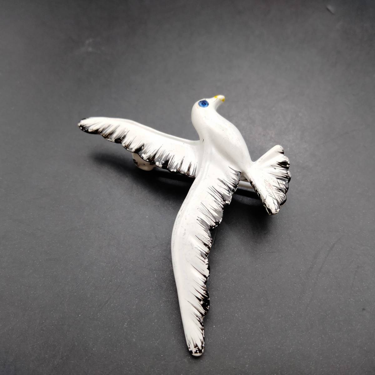 GERRY'S ホワイト バード 鳥 モチーフ 立体 ビンテージ ブローチ 昭和レトロ コスチューム ジュエリー 輸入 6S-6