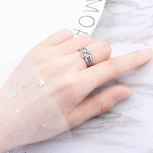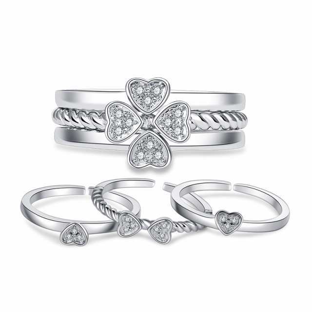 幸運のお守り 四つ葉指輪 ハートリング レディースリング 指輪 スライド調整 アレルギー対応 ジュエリー 指輪レディース