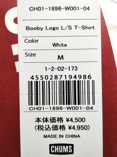 【送料185円】 CHUMS チャムス 長袖Tシャツ Booby Logo ロンT (S) ホワイト / ch01-1896