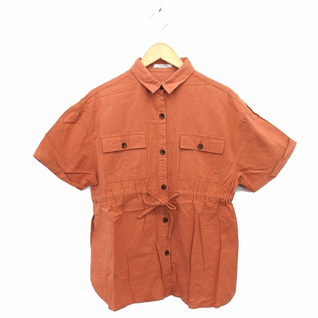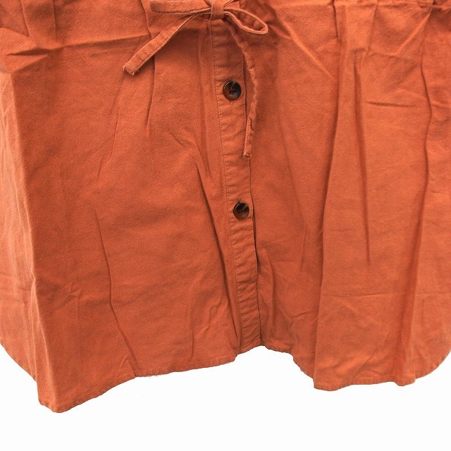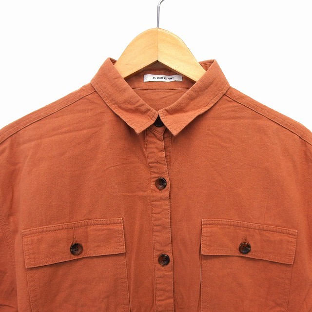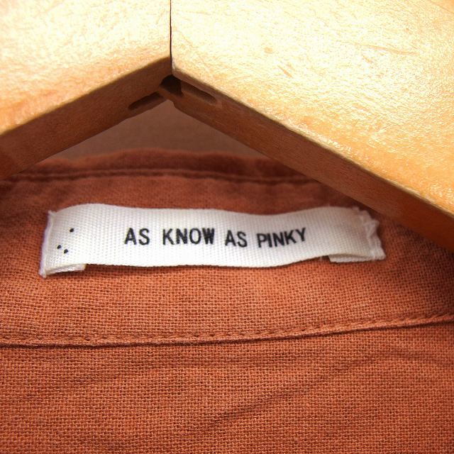 アズノウアズ ピンキー AS KNOW AS PINKY シャツ ブラウス ステンカラー コットン 綿 リボン ドロップショルダー 五分袖 茶