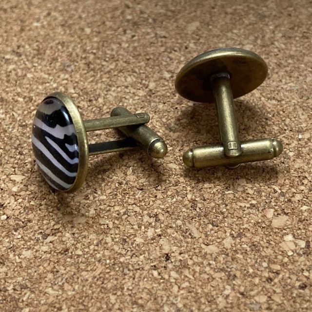 お揃いのタイピン、シルバーバージョンのカフスボタン 、ピンバッジもございます