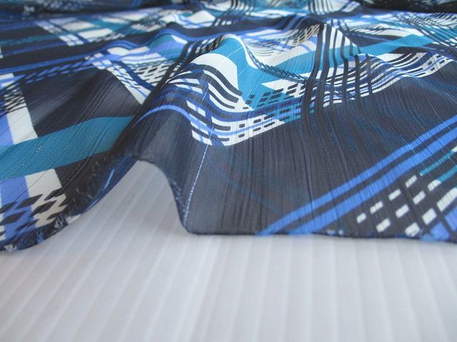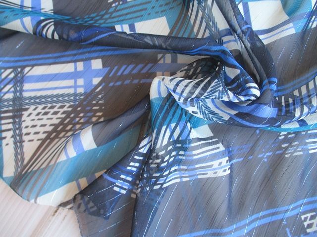 | ★ラメ入りバイヤスチェック楊柳 シフォン生地☆ブルー系 | |||