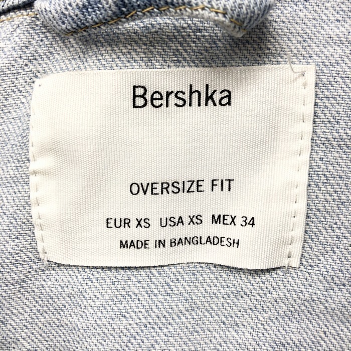 | 商品タイトル | Bershka ベルシュカ XS メンズ 男性 デニムジャケット Gジャン ジージャン バックプリント 英字 長袖 綿100% コットン ライトブルー 薄青 |