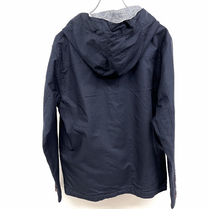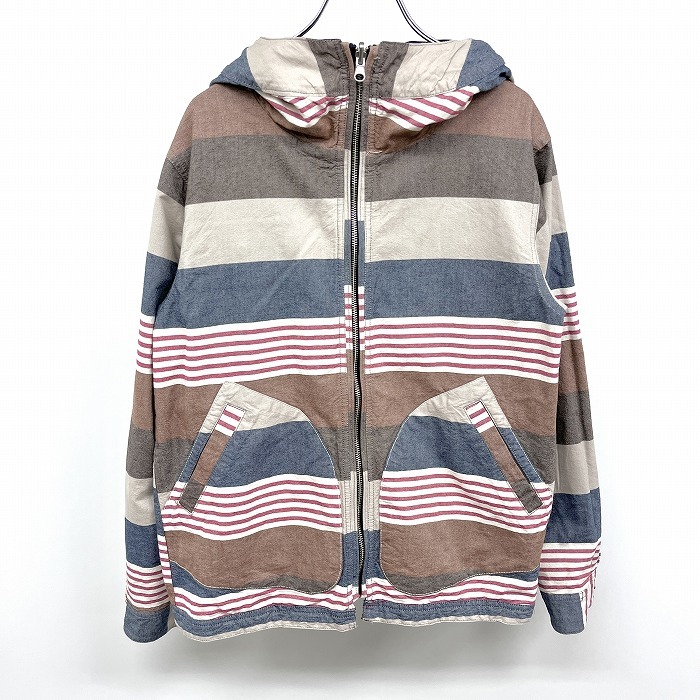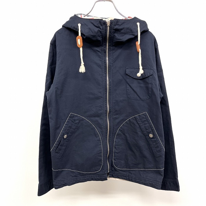 商品タイトル | grn ジーアールエヌ S メンズ 若干薄手 リバーシブル ジップアップ ジャケット パーカー 無地×ボーダー柄 長袖 綿100% ネイビー 紺 |