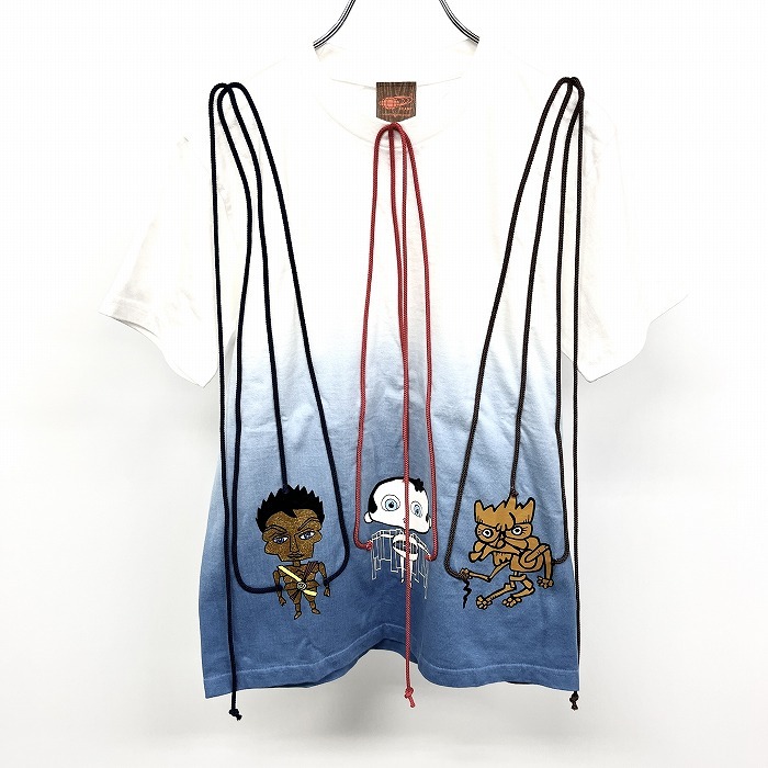 | 商品状態・ディテールなど | (※実測寸法など、多少の誤差はご容赦下さい。) (※商品は全て畳んで保管しております。保管による畳み皺などはございます。その点ご了承下さい。) ●気になったダメージの場所と種類: ・所々:- ・全体:- ・肩:- ・襟:- ・胸:- ・腹部:- ・裾:- ・右袖:- ・左袖:後ろ身頃側に薄シミ箇所 ・袖口:- ・背中(上):- ・背中(下):- ・内側:- ●その他ディテール:一部ゴールドラメのマリオネットプリント、紐が肩と襟部分から垂れ下がっているデザイン、両面プリント ●付属品など:- ●その他:- |