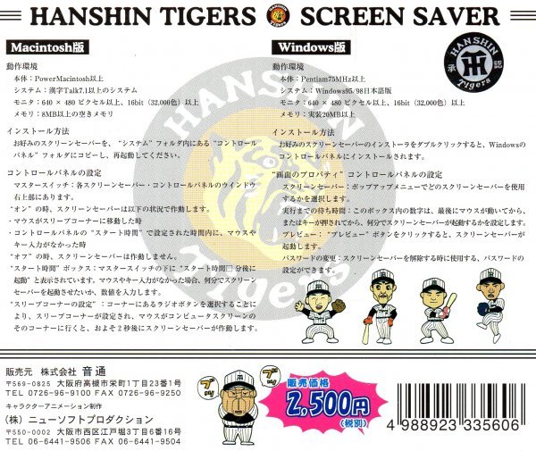 阪神タイガースのスクリーンセーバーが収録されたパソコンソフトです。
