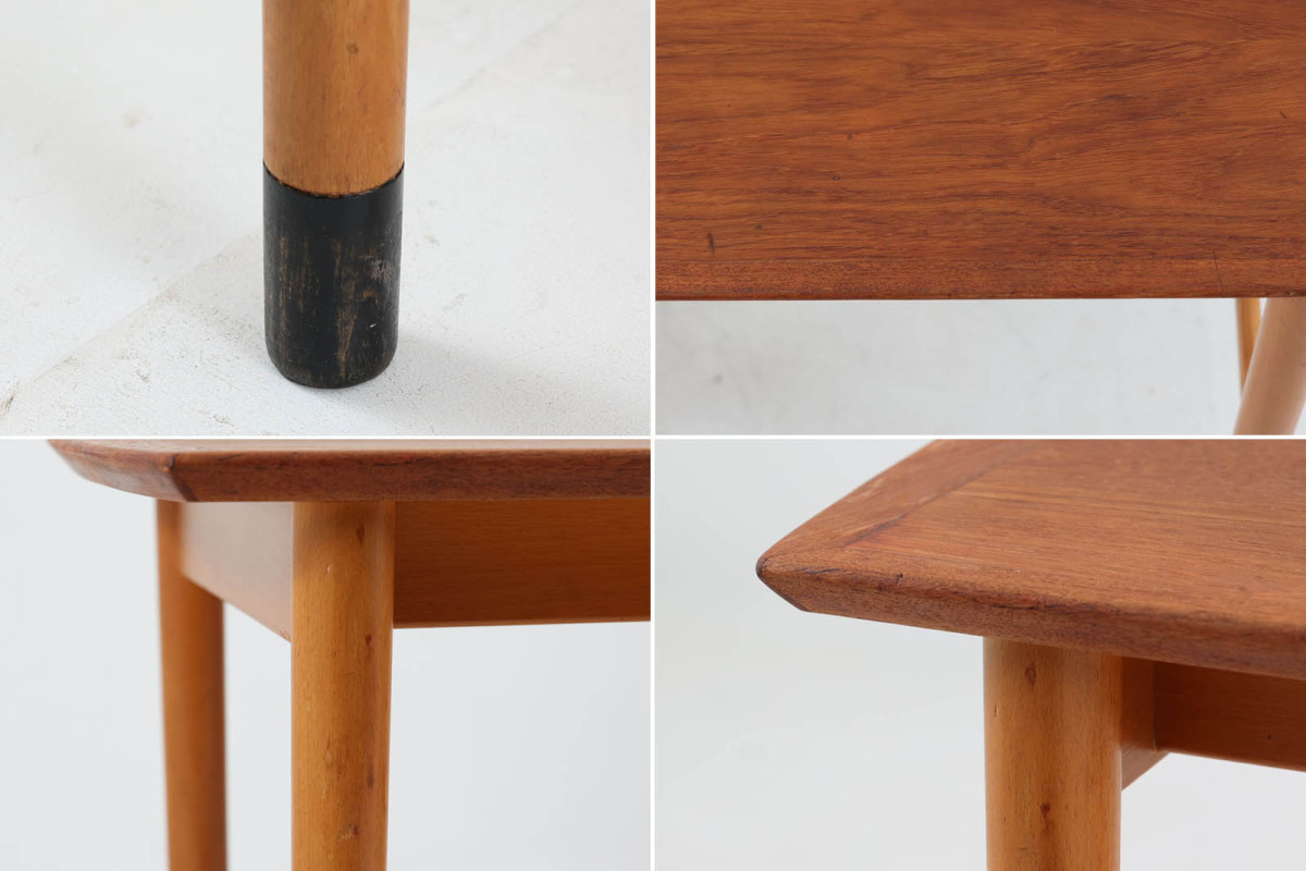 コンディション | 木部に傷、焦げ跡、凹み傷などビンテージ感がございます。 ※ビンテージ品です。お伝えしきれない細かい傷や使用感等が御座います。ご了承下さいませ。 「メンテナンス内容」 本体(天板)はサンディング後、オイル塗装を行いました。 |