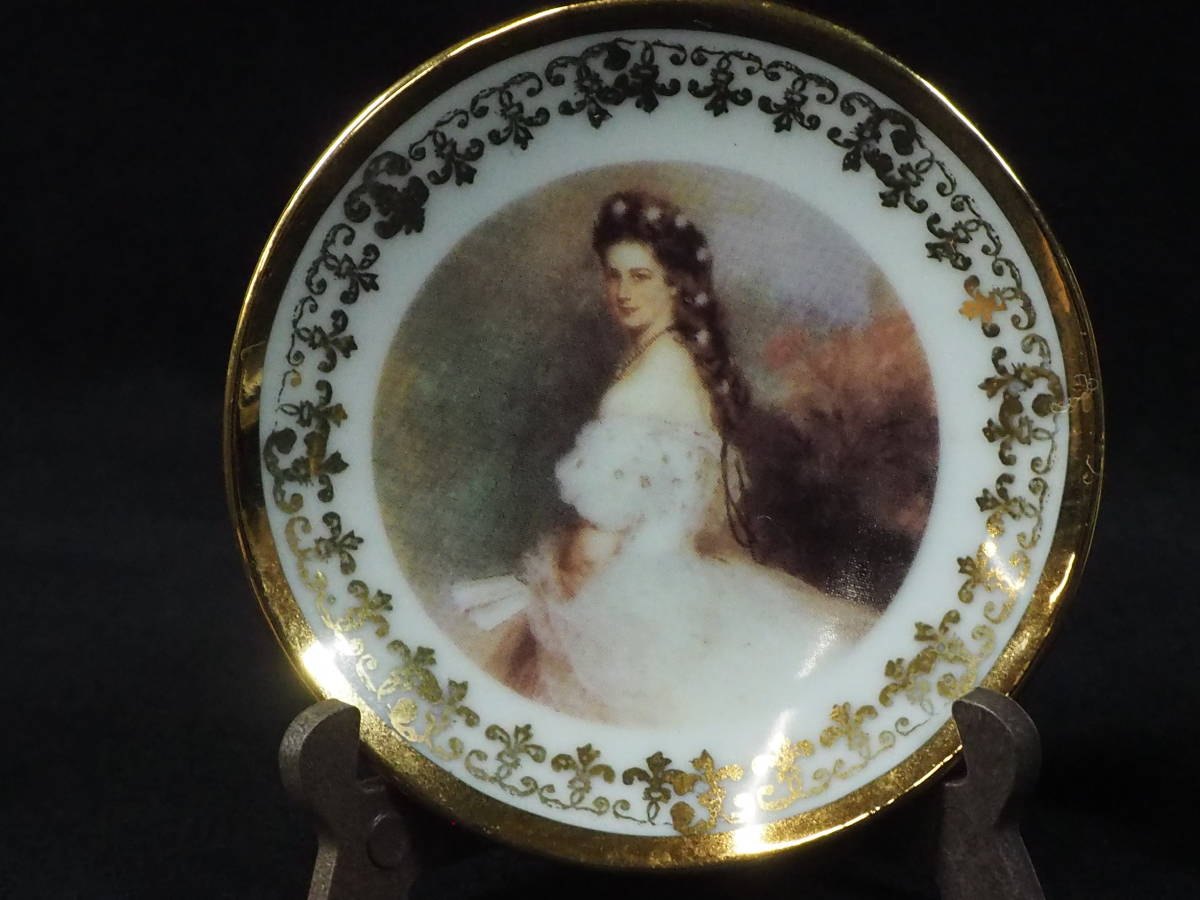 オーストリア ビンテージ 皇后エリザベートの金縁プラーク2枚 シシィプレート 皿立て付き 直径7cm 高さ1cm 1980年代 YTK507