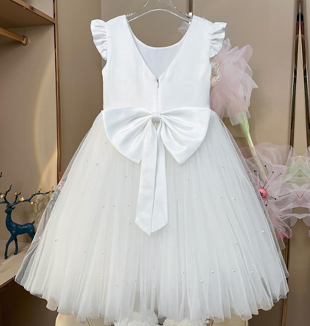 100-150cm ロング丈 ドレス 女の子 オシャレ ワンピース リボン付き プリンセス 演出服 演奏会 卒業式 結婚式 パーティー k82
