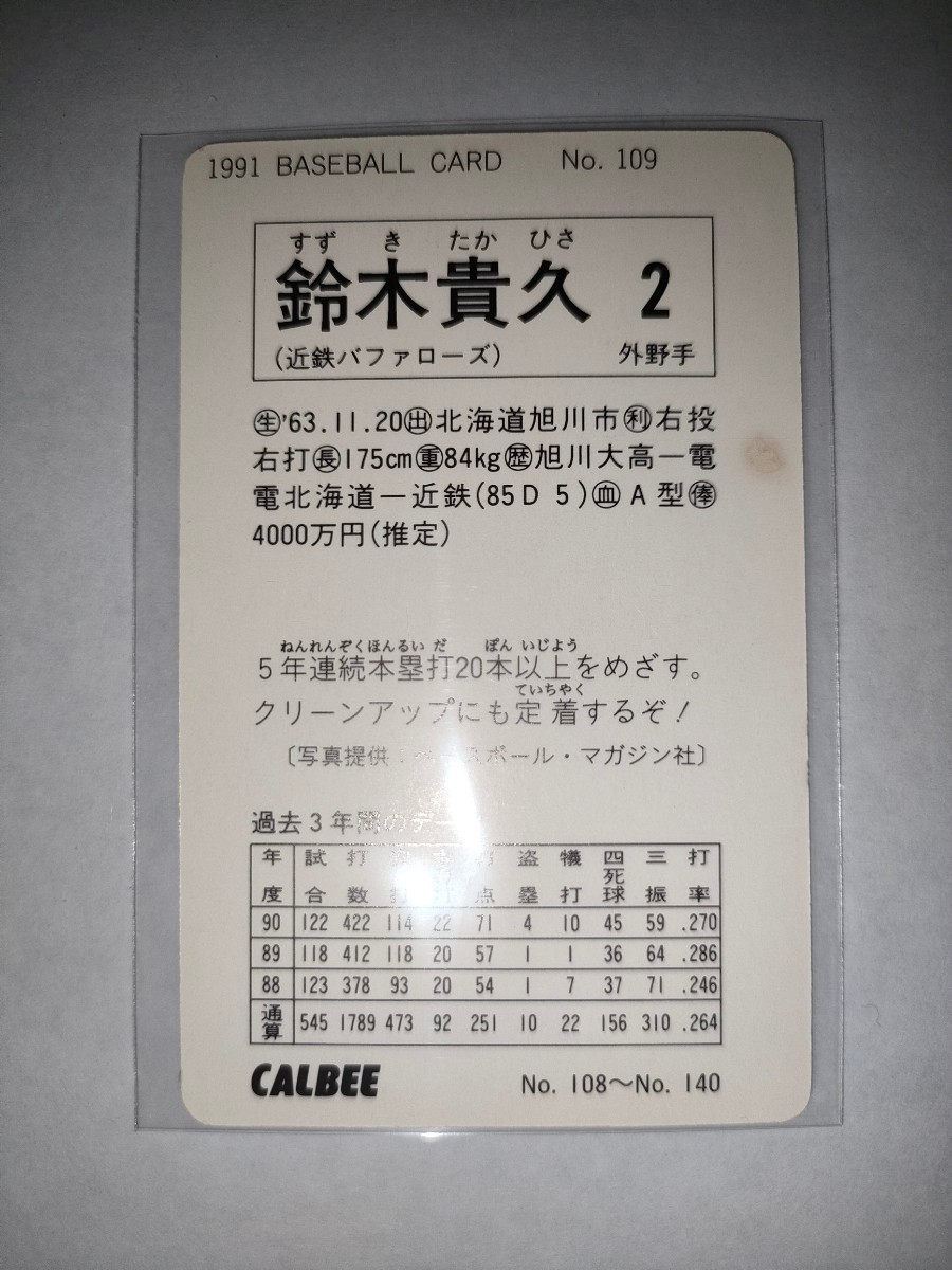 鈴木貴久 91 カルビープロ野球チップス No.109 近鉄バファローズ