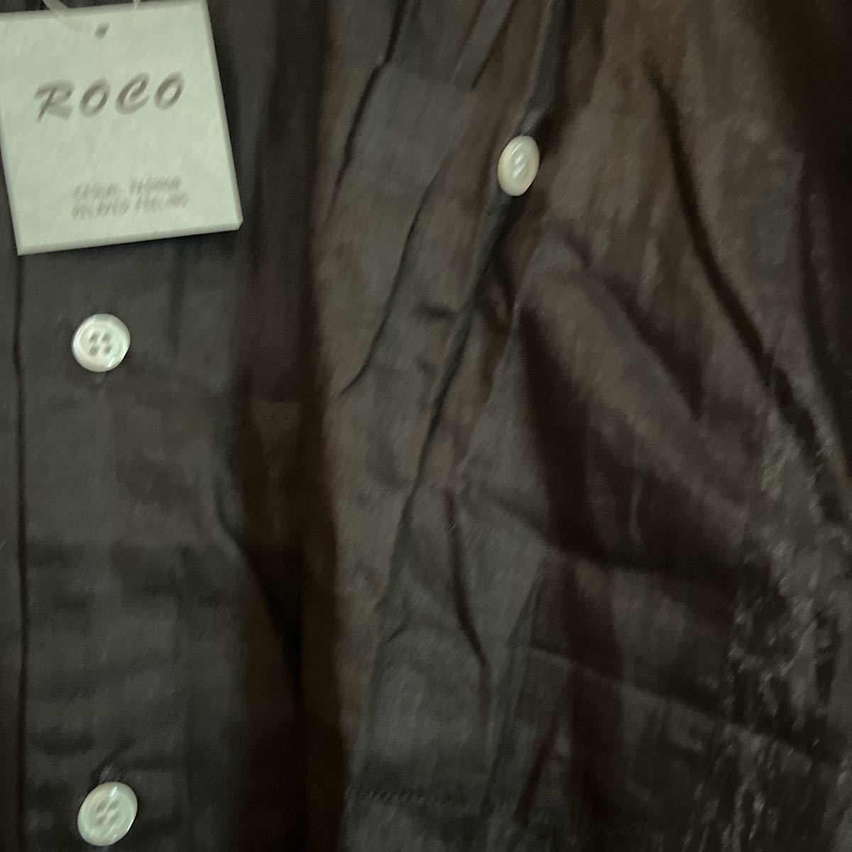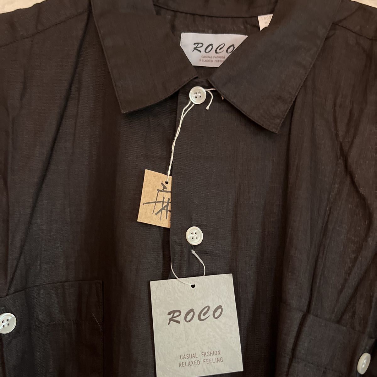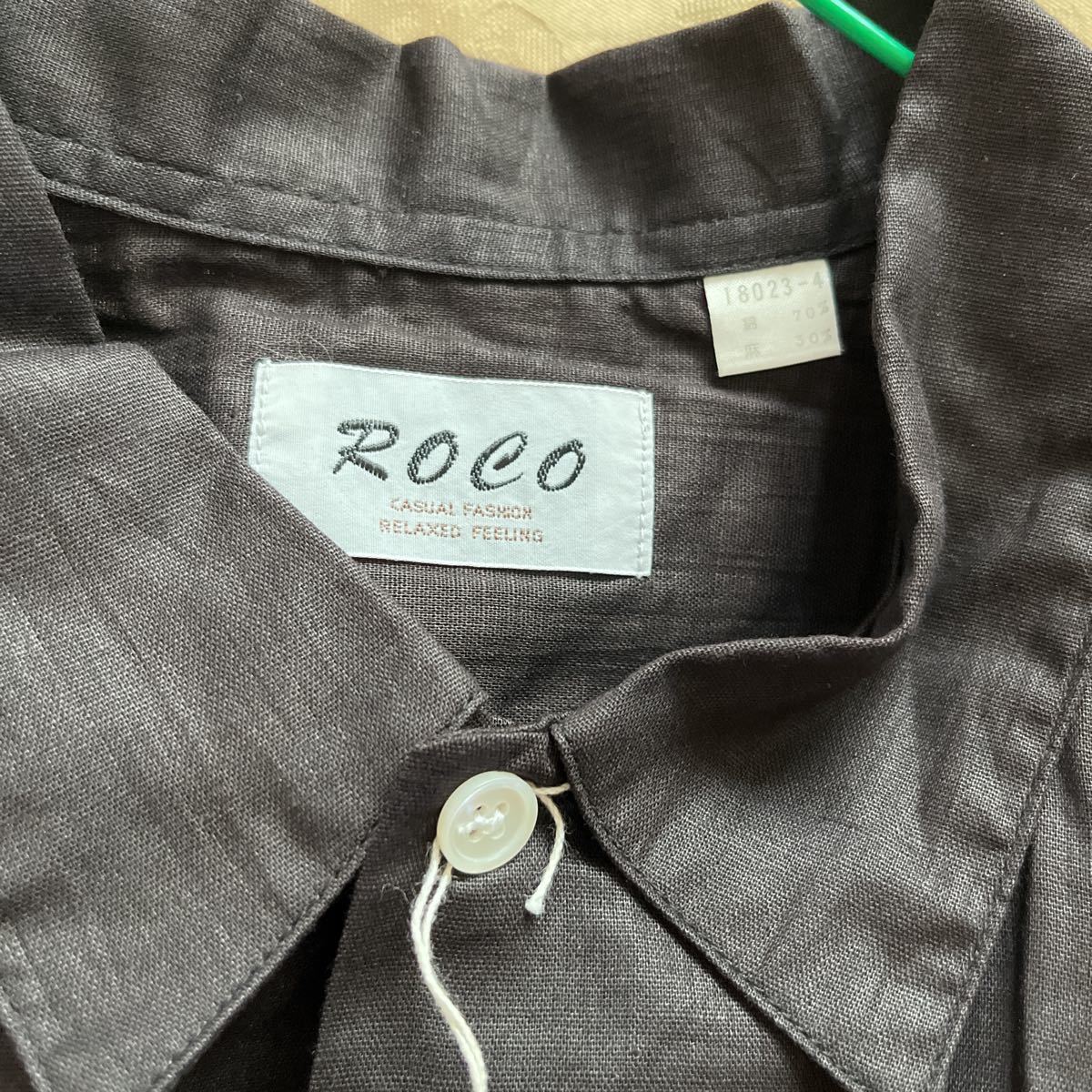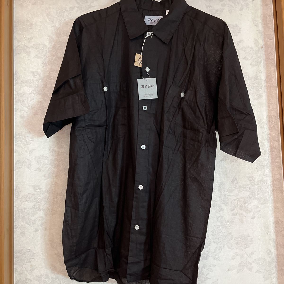 新品未使用タグ付き★ROCO★半袖シャツ L 焦茶 胸ポケットあり 綿70%麻30% 薄手 です。