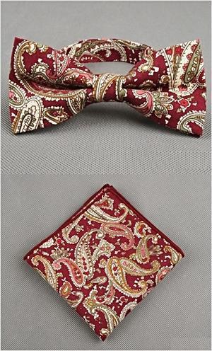 流行のペイズリー柄ののポケットチーフ付蝶ネクタイ TBC-m158