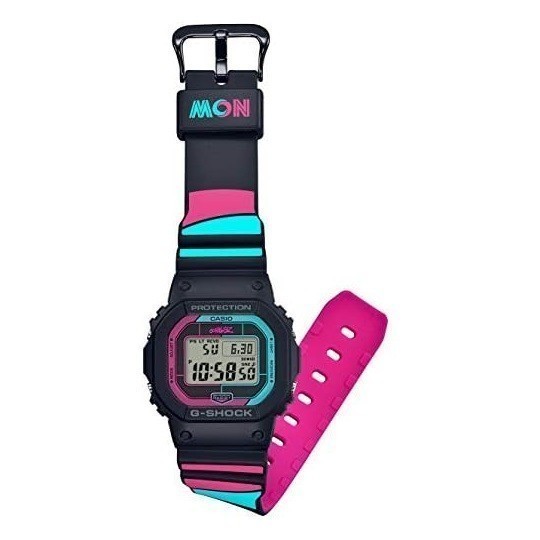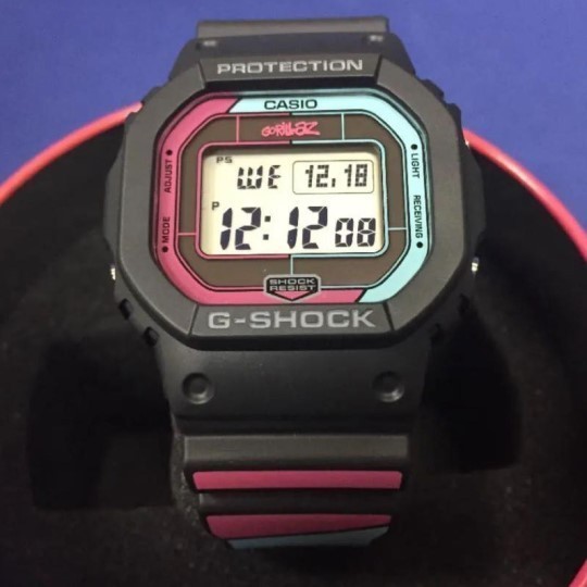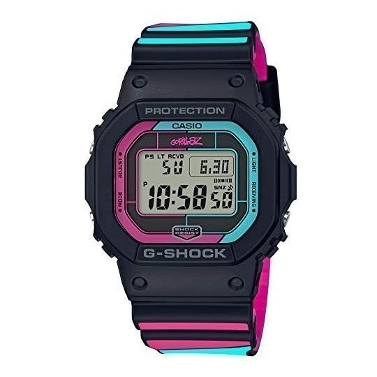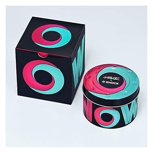 GW-B5600GZは、Gorillazのアルバム"NOW NOW"の色合いにインスピレーションを得たデザイン。ポップなブルーとピンクを大胆に使い、バックライトにもバイカラーの"NOW"が浮き出てくる仕様になっています。