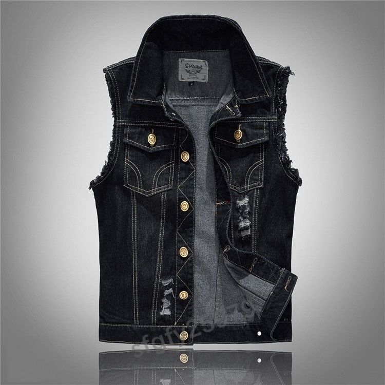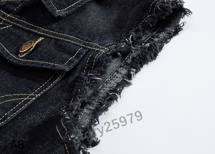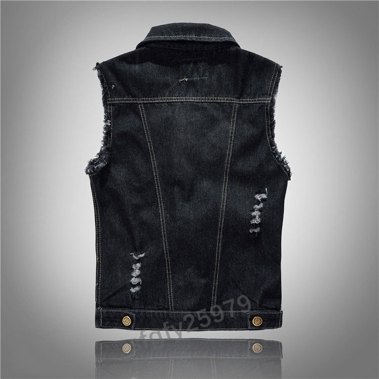 E563☆新品メンズ デニムベスト ノースリーブ デニムジャケット ダメージ加工 タンクトップ Gジャン 大きいサイズL
