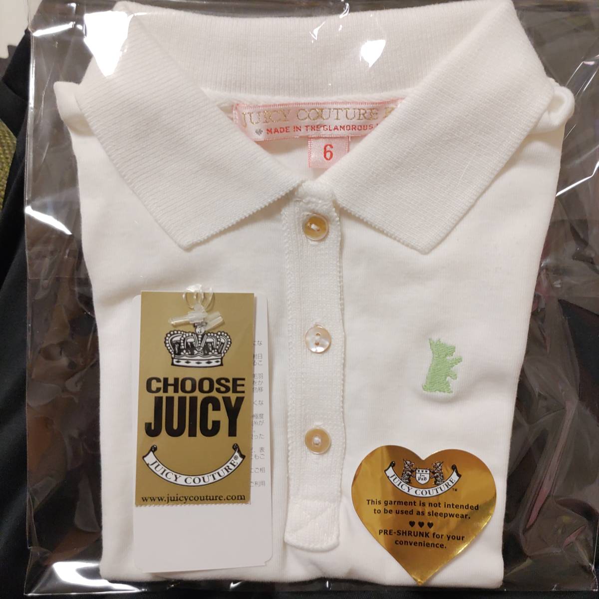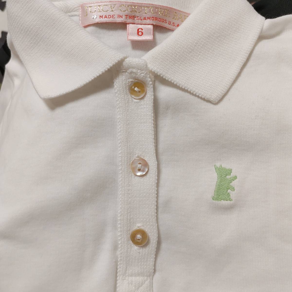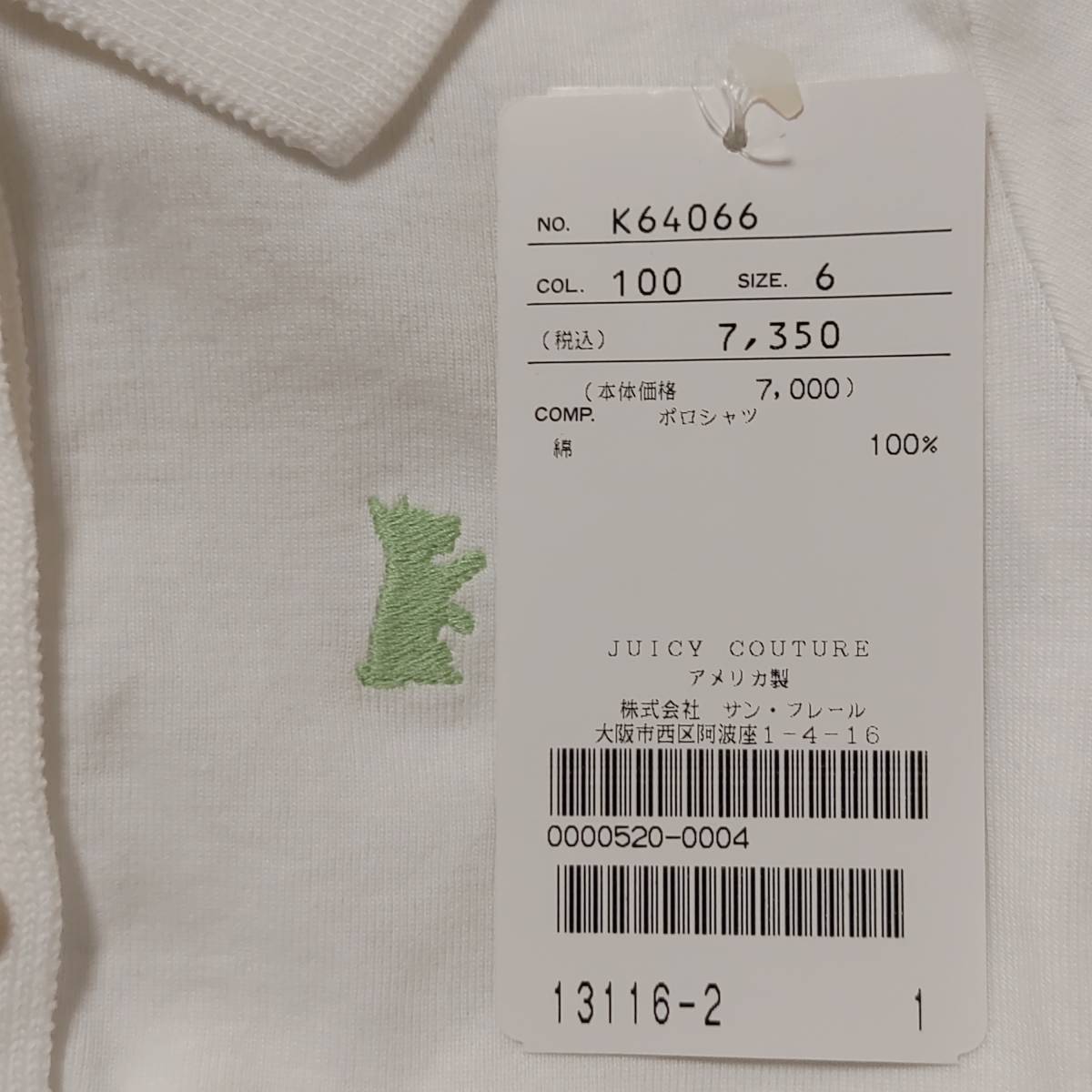 新品タグ付き半額以下!USA製☆JUICY COUTURE半袖ポロシャツ白Mサイズ6号110cmホワイト黄緑114-117cmキッズKIDSジューシークチュールpolo shirt綿100%男の子こども女の子