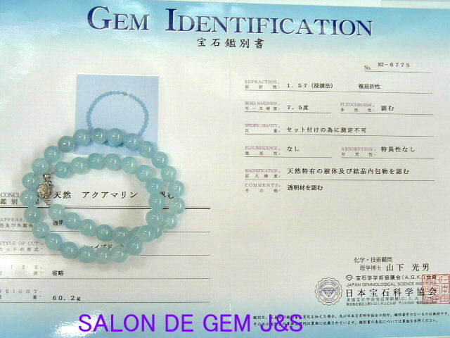 ★★★SALON DE GEM J&S 特選アクセサリー『アクアマリン』宝石鑑別書付★★★(NZ-6775)