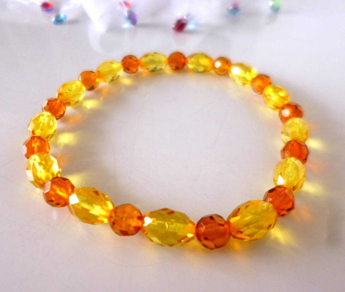 細身と天然琥珀ならではの軽さが特徴のブレスレットです♪