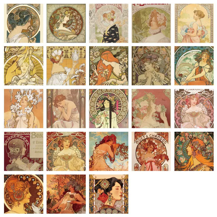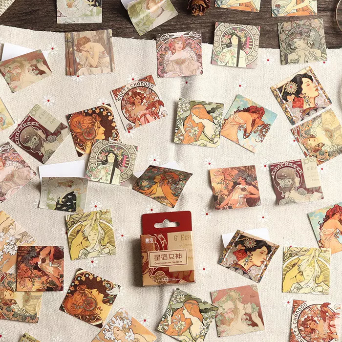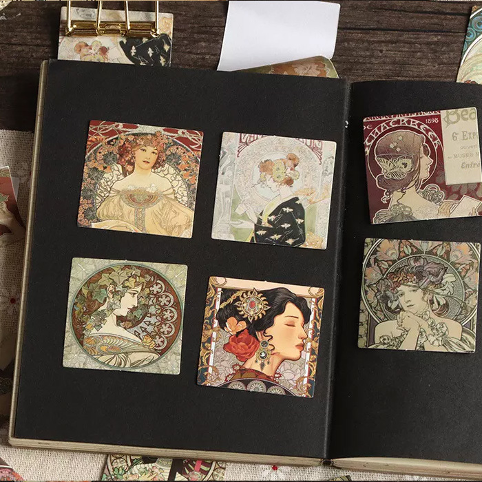 46枚 シール アート 絵画 美術 イラスト アンティーク デコ 1029