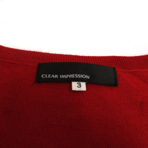クリアインプレッション CLEAR IMPRESSION カーディガン ニット 長袖 V襟 シンプル レッド 赤 3 レディース
