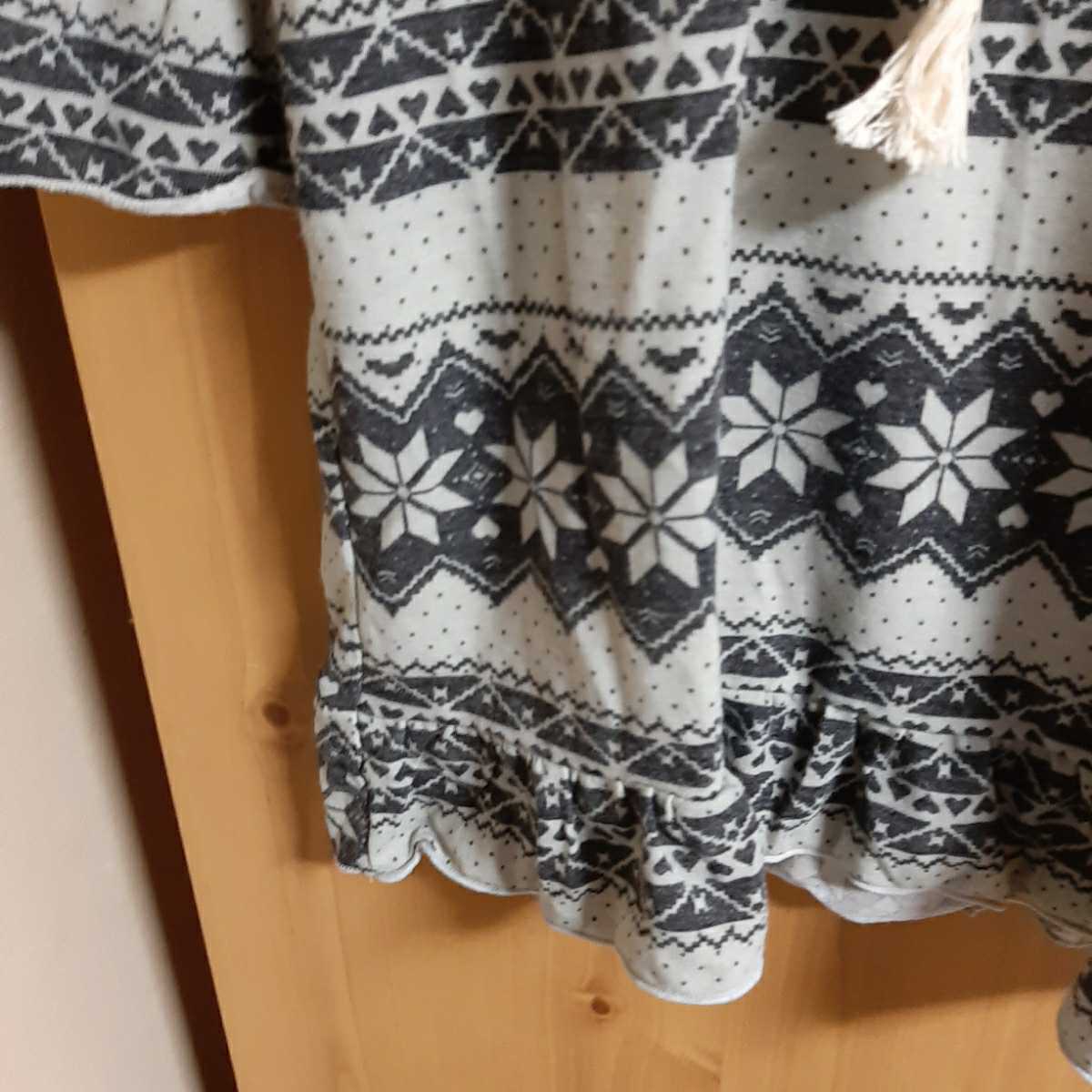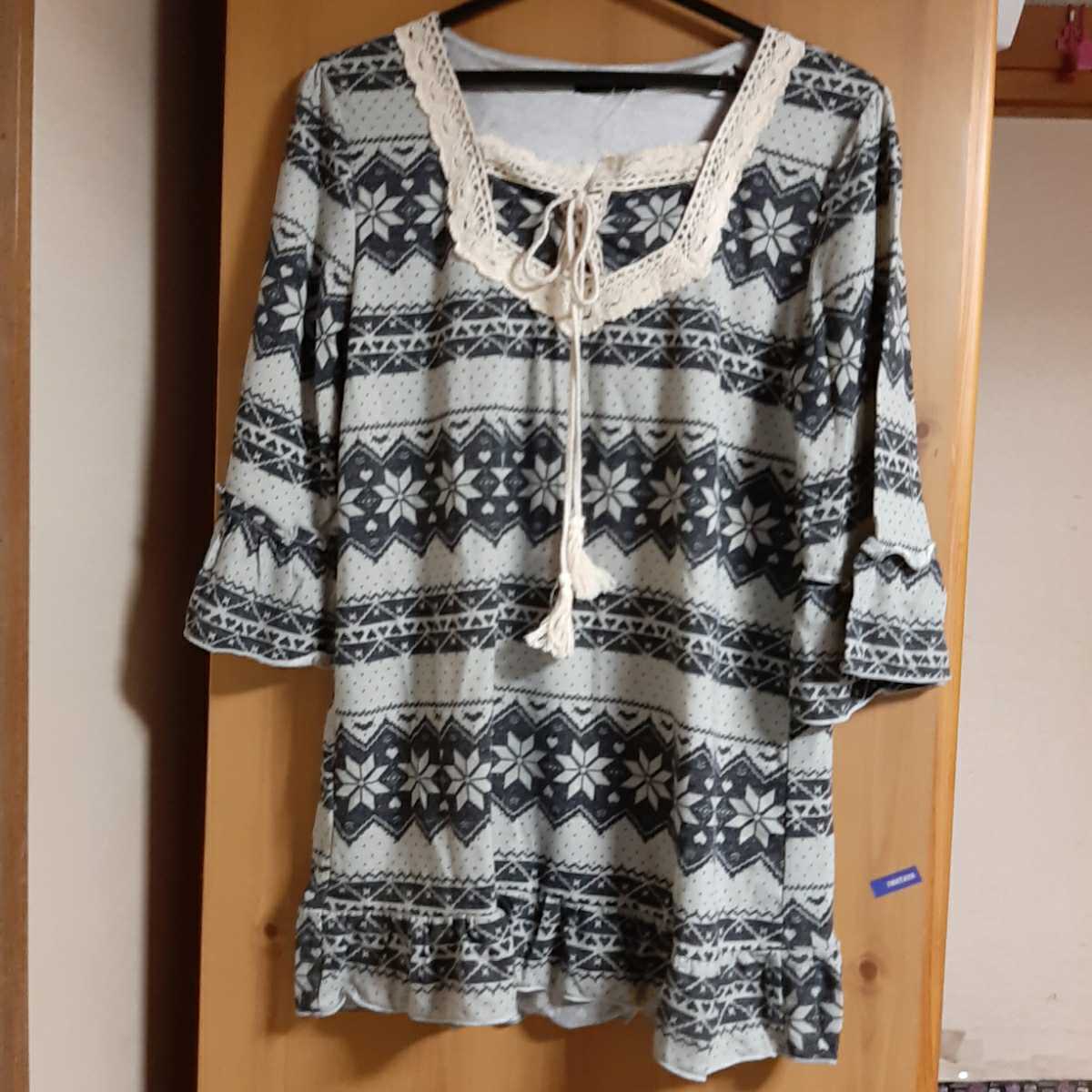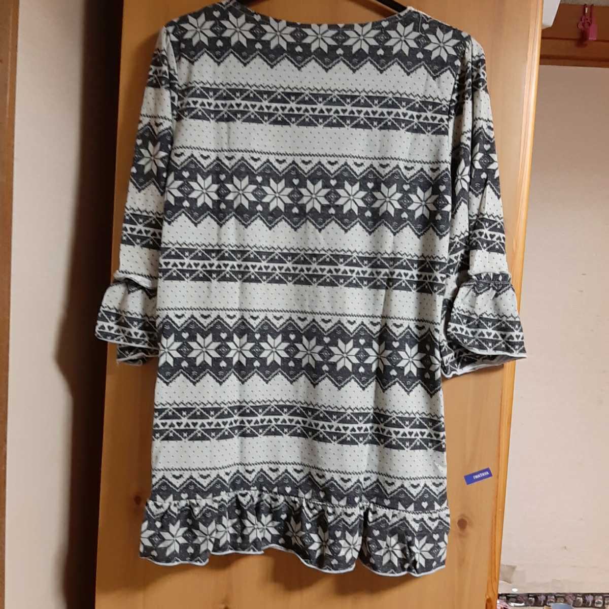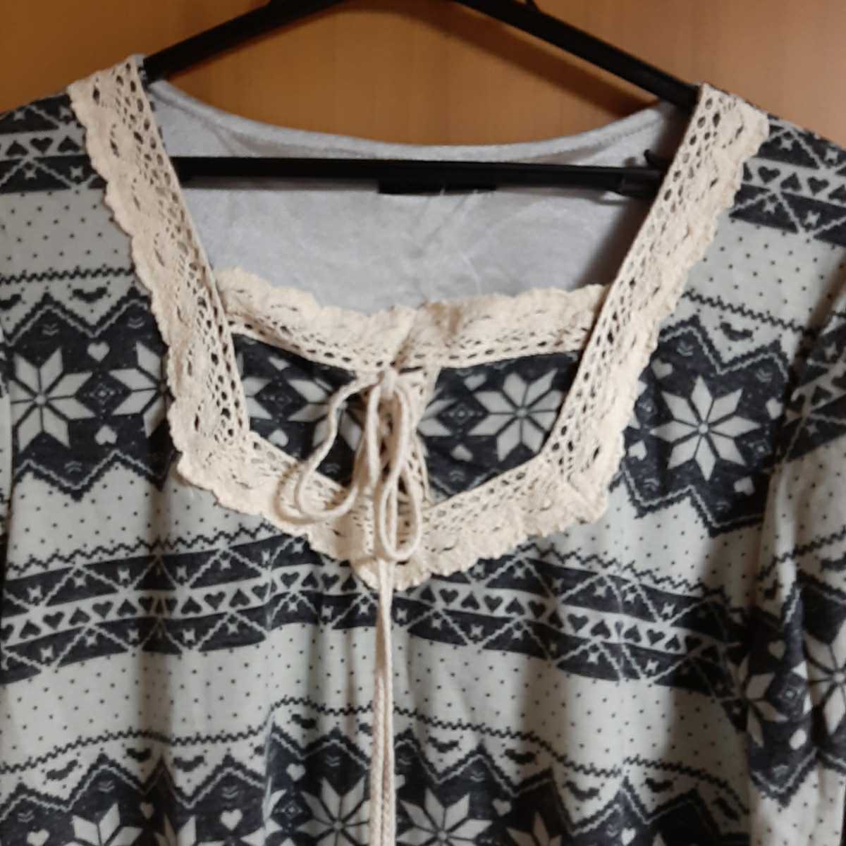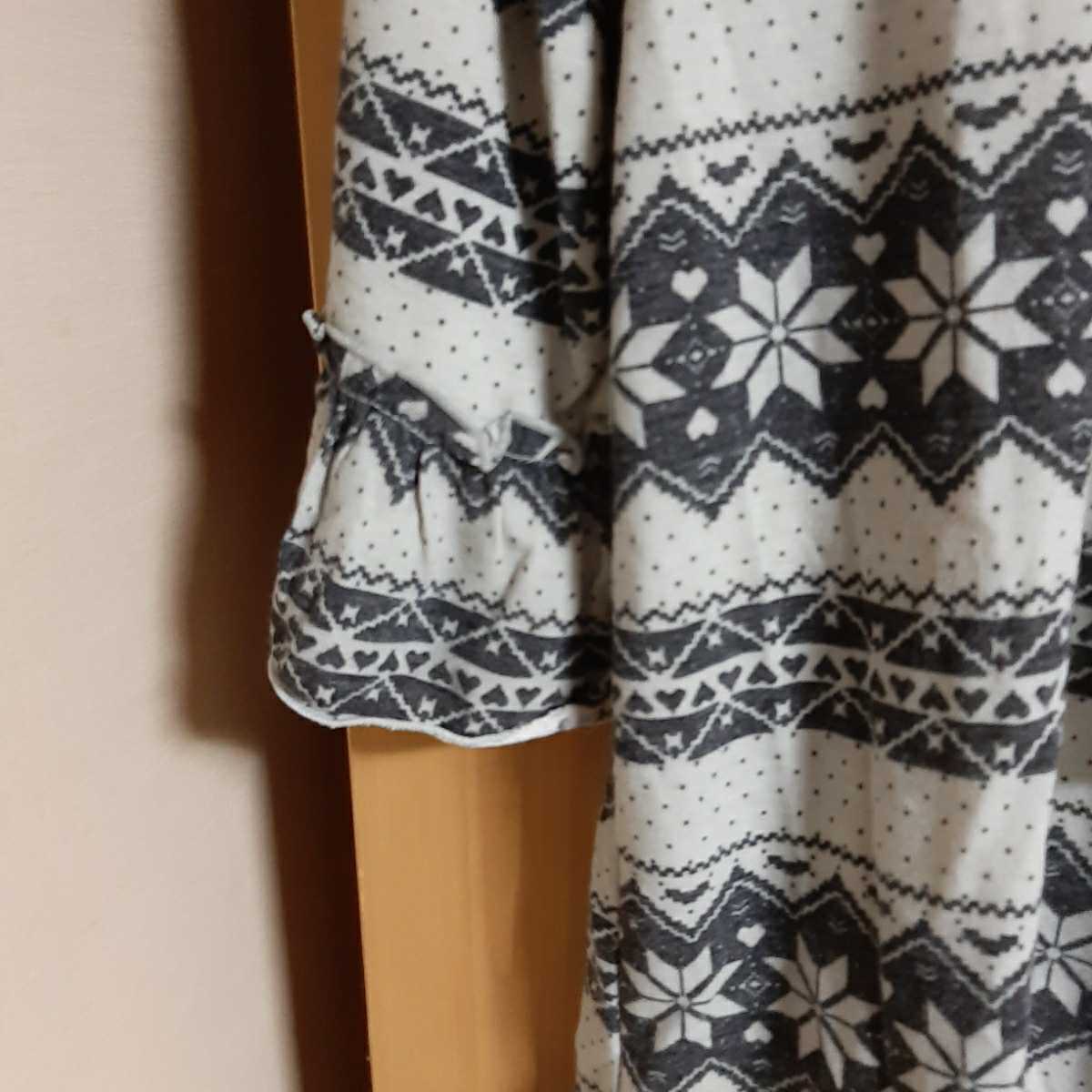 グレーに雪柄の裾と袖口がフリル仕様のチュニック*