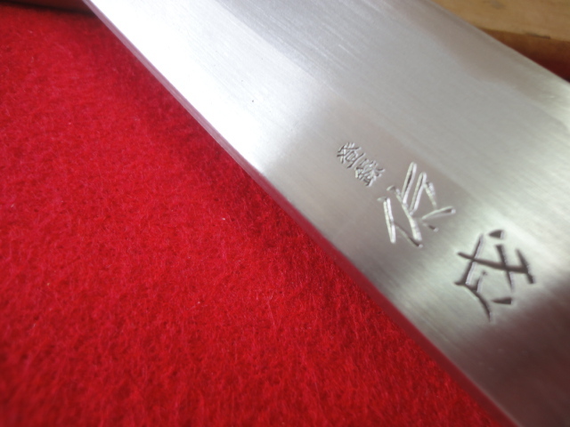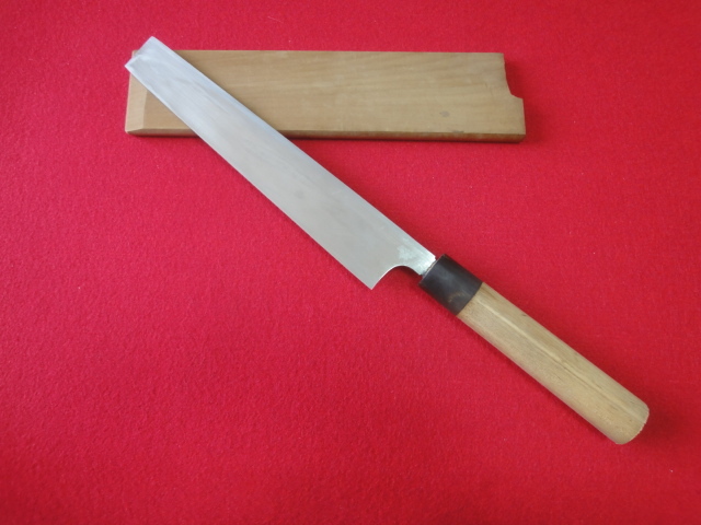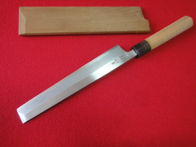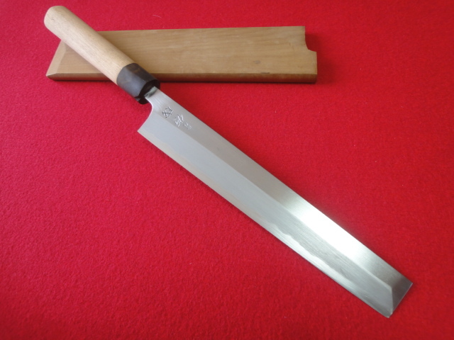 【佑成】関東型薄刃包丁 刃渡22.8㎝ 全長39.3㎝ 峰厚4.4㎜ ※鞘付 ※片刃 中古品 全国一律送料1100円