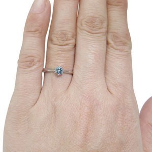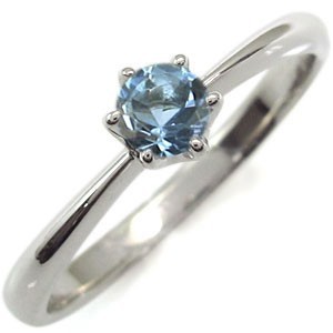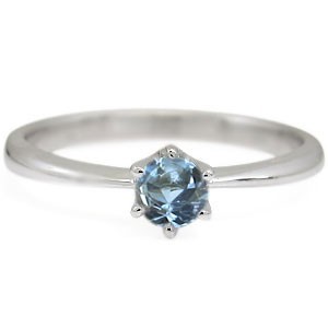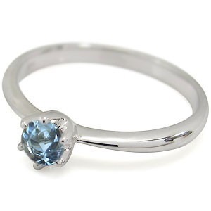 3月誕生石アクアマリンサンタマリアを一粒使用した、シンプルデザインの18金製リング(指輪)です。